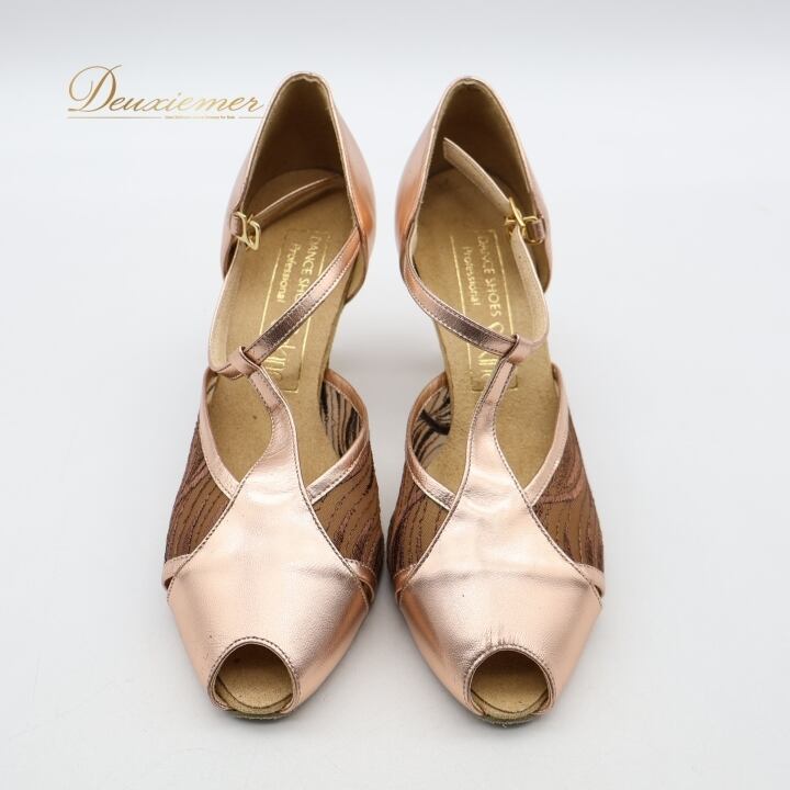 社交ダンス 衣装 シューズ 23cm ピンク系 セキネ SEKINE 靴 くつ ヒール 光沢 メッシュ レディース ストラップ 茶 上品 かわいい ダンスシューズ ダンス衣装 ステージ イベント 練習 レッスン ブラウン系