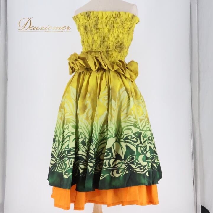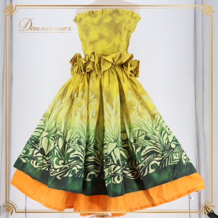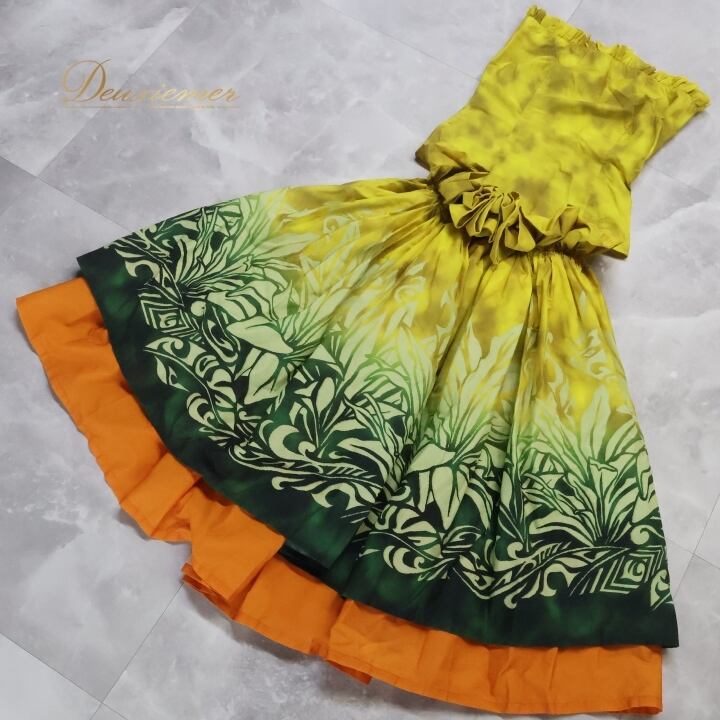 フラダンス 衣装 ツーピース セットアップ 上下セット アロハスタンダード イエロー系 ALOHA STANDARDS グラデーション チューブトップ パニエ かわいい 鮮やか 華やか 明るい ハワイアン アロハ ハワイアンプリント フラ ダンス レッスン