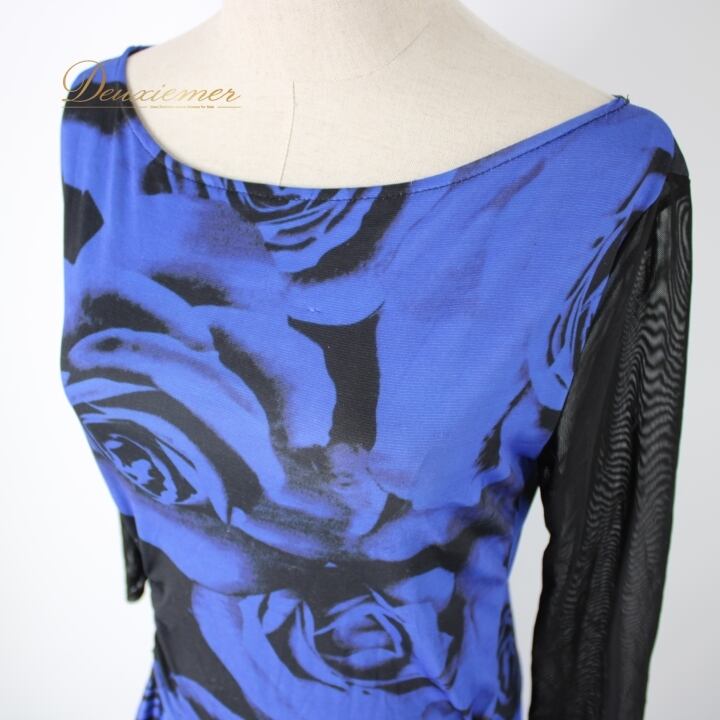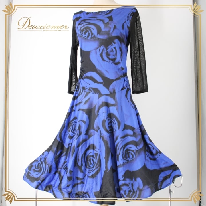 #社交ダンス #ダンス衣装 #ドレス #ブルー #ブラック #花柄 #ホースヘア #ファッション #ダンスファッション #ポリエステル #ポリウレタン #伸縮性 #軽量 #運動性 #女性用 #トルソー #スタイル #ダンスパフォーマンス #イベント #ENUTSU