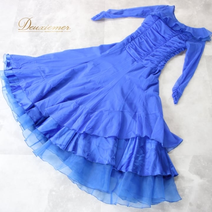 #社交ダンス #ダンス衣装 #ドレス #ロイヤルブルー #アシンメトリーデザイン #日本製 #ファスナー仕様 #伸縮性 #ダンスコスチューム #女性用ドレス #特別な日 #パーティードレス #ダンスパフォーマンス #エレガント #スタイリッシュ #全体コーデ #サイズM #トルソー着用 #クラシックスタイル #ENUTSU