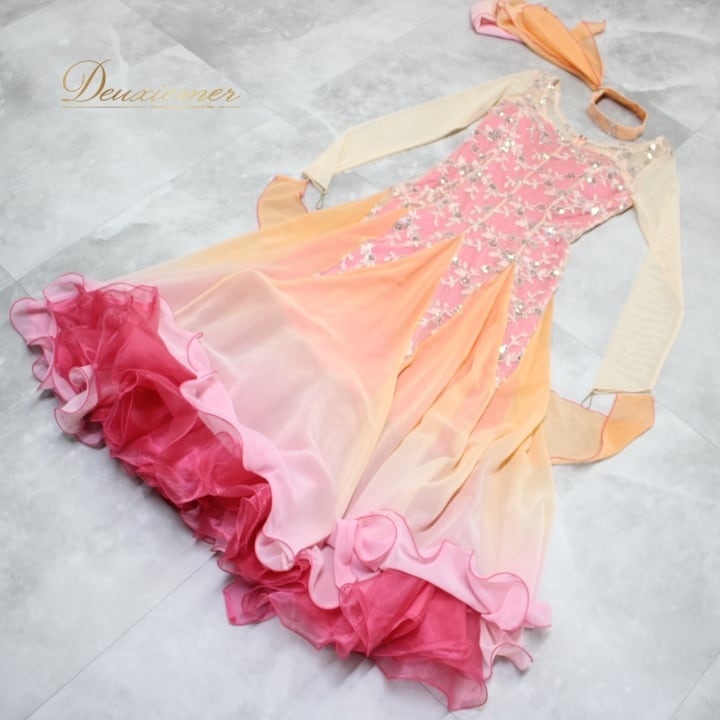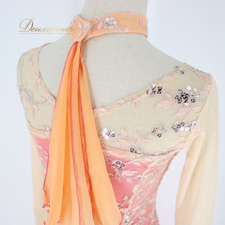 #社交ダンス #ダンス衣装 #ドレス #Mサイズ #ファスナー仕様 #スパンコール #華やか #ダンスファッション #バレエ #舞踏 #フロートデザイン #ピンク #オレンジ #ダンススタイル #パフォーマンス #イベント衣装 #女性用トルソー #ポリエステル #スタイル #ENUTSU