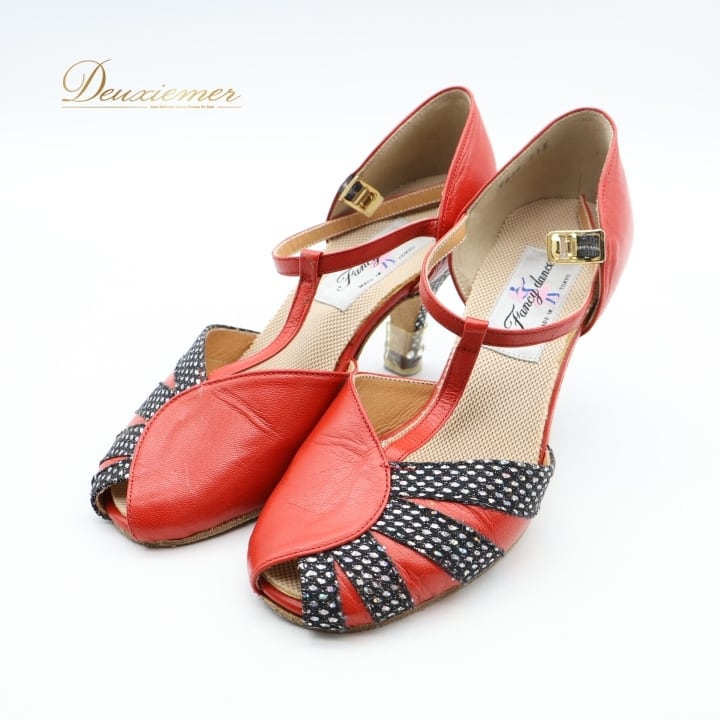 #社交ダンス #ダンスシューズ #ダンス衣装 #日本製 #レッドブラック #ラインストーン #ダンスファッション #デザインシューズ #ヒール7.5cm #FancyDance #華やか #大人の趣味 #社交ダンス衣装 #ダンススタイル #エレガント #オシャレ #ダンスイベント #パーティー #ダンス用シューズ #ENUTSU