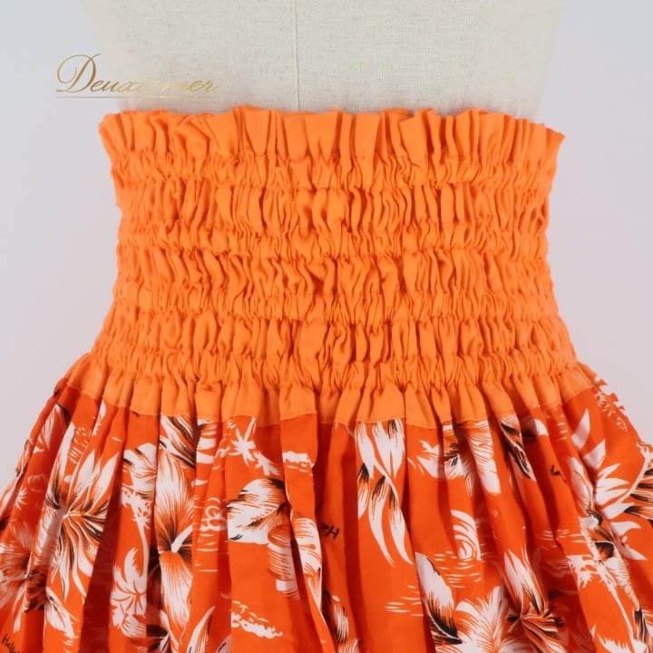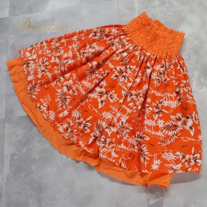 #フラダンス #パウスカート #ハワイアン #衣装 #ダンス衣装 #カラフル #オレンジ #ハワイ #ファッション #夏祭り #リゾート #動きやすい #ウエストゴム #かわいい #プリント #綿100 #トルソー #女性用 #フラダンス衣装 #ENUTSU