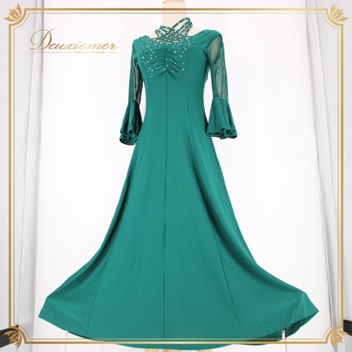 #社交ダンス #ダンスドレス #ダンス衣装 #イチオク #グリーンドレス #ラインストーン #フォーマルドレス #パーティードレス #演技用衣装 #レディースファッション #ダンスファッション #ダンスコスチューム #美しい衣装 #伸縮性 #洗練デザイン #トルソーサイズ #華やかさ #落ち着き #ダンススタイル #ENUTSU