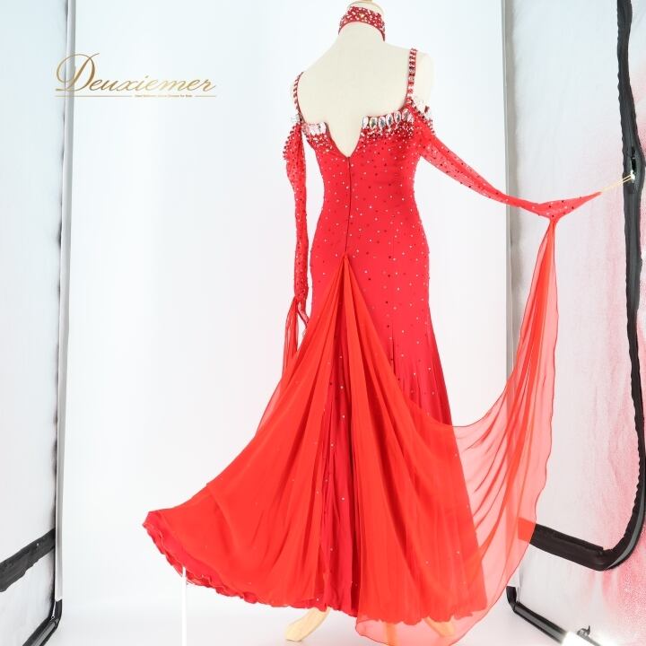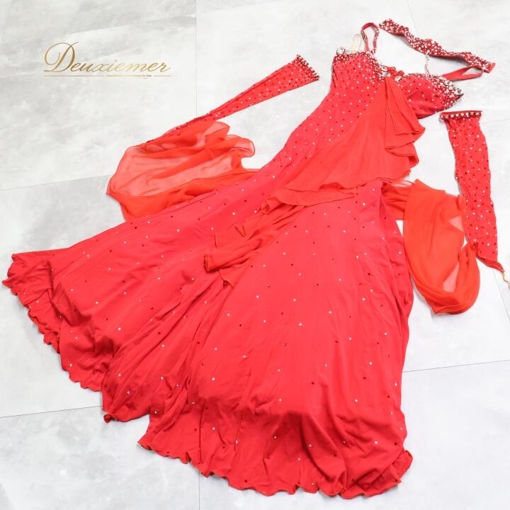 社交ダンス 衣装 スタンダードドレス ワンピース ドレス スタンダード 赤 フロート レース イングランド製 無地 ストレッチ チュール 豪華 デモ 競技 ダンス パーティ 発表会 ビジュー レッド系 フォーマルドレス おしゃれ 高級感 華やか エレガント レディース用