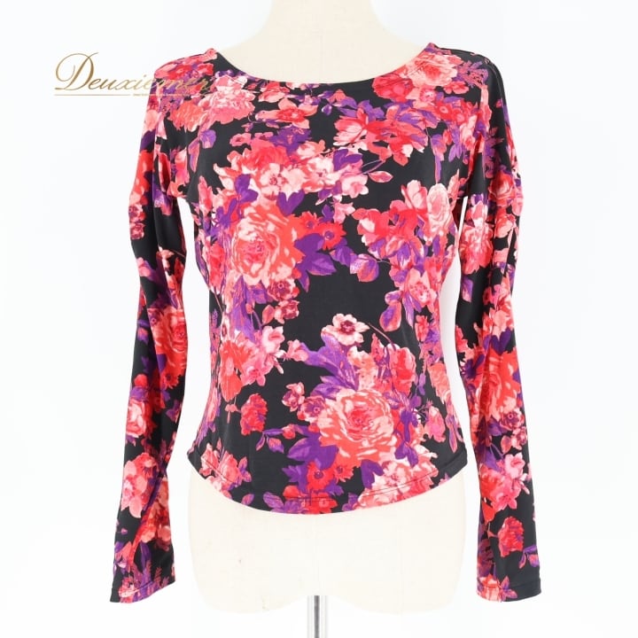社交ダンス 衣装 トップス ブラウス ブラック系 チャコットロイヤルダンス Chacott ROYAL DANCE 伸縮 ストレッチ 練習 レッスン 黒 赤 紫 花柄 長袖 上品 鮮やか 華やか パーティー ダンス衣装 ピンク系 レッド系 パープル系