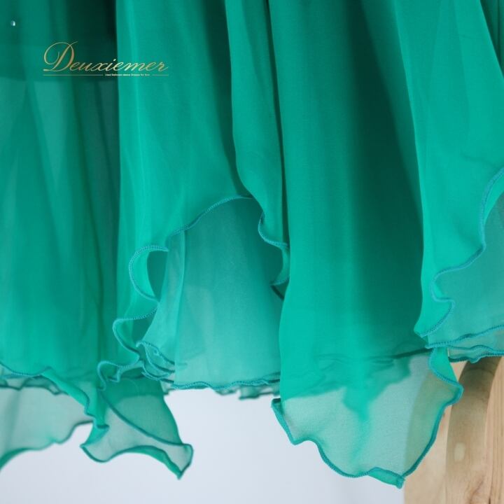 #社交ダンス #ダンス衣装 #スカート #エレガント #グリーン #日本製 #Sanline #ラインストーン #ファスナー仕様 #伸縮性 #ボリューム #優雅な動き #トルソー #ファッション #ダンスファッション #パーティースタイル #ウェア #衣装 #ダンスパフォーマンス #ENUTSU