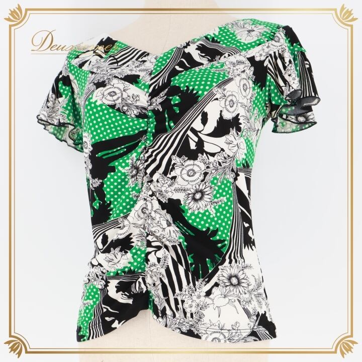 #社交ダンス衣装 #ダンストップス #ブラウス #チャコット #Chacott #日本製 #伸縮性 #ブラックグリーンホワイト #花柄 #ドット柄 #Lサイズ #ダンスファッション #コスチューム #社交ダンス #パーティー衣装 #女性用 #トルソー #ダンススタイル #ファッションコーデ #ダンスライフ #ENUTSU