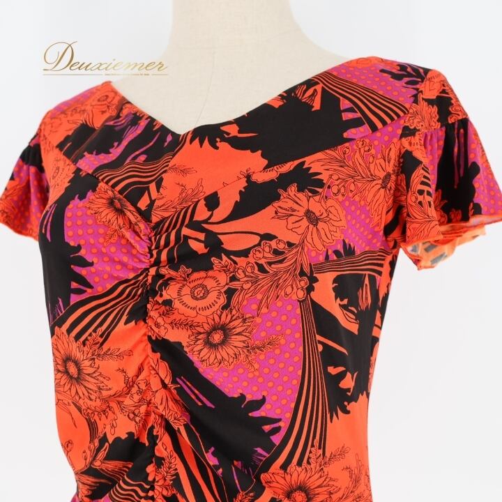 #社交ダンス #ダンス衣装 #トップス #ブラウス #Chacott #チャコット #日本製 #オレンジ #ブラック #パープル #鮮やか #花柄 #ドット柄 #ファッション #女性用 #ダンススタイル #ダンスウェア #ストレッチ素材 #ダンスパフォーマンス #衣装 #ENUTSU