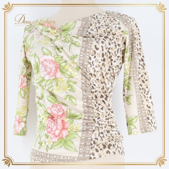 #社交ダンス #ダンス衣装 #ブラウス #チャコット #日本製 #伸縮性 #花柄 #ヒョウ柄 #淡い色合い #ダンストップス #ダンスファッション #社交ダンス衣装 #女性用トルソー #Mサイズ #ポリエステル #ダンススタイル #ダンス競技 #スポーツファッション #おしゃれ #ENUTSU