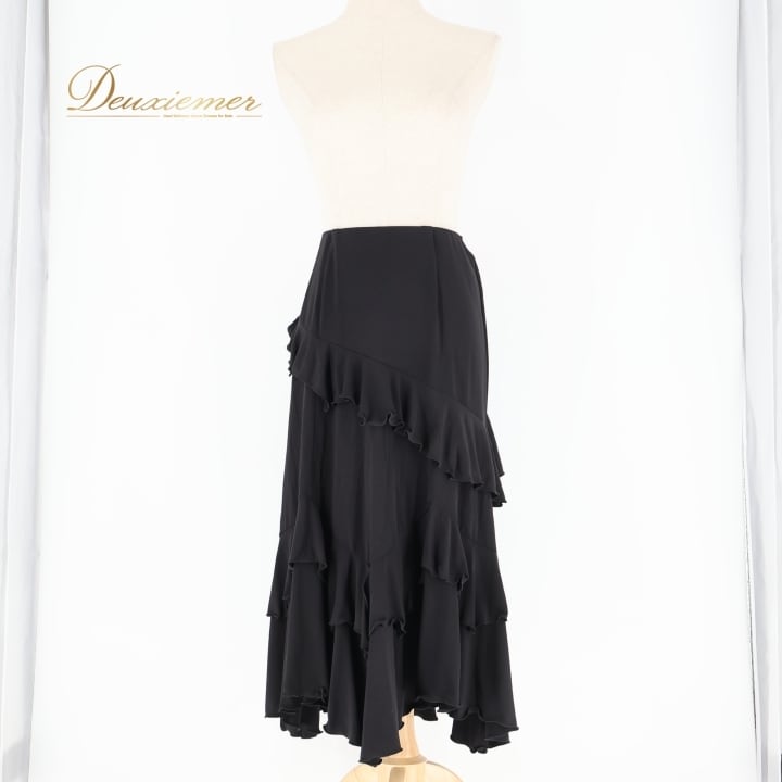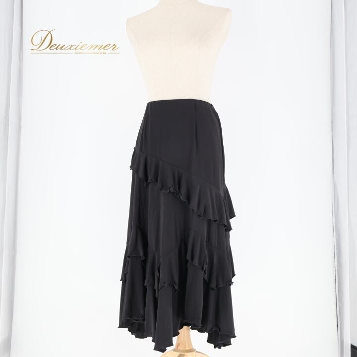社交ダンス 衣装 スカート ブラック系 チャコット Chacott 黒 無地 シンプル 練習 レッスン 伸縮 ストレッチ フリル 上品 日本製 かわいい ダンス衣装 パーティー