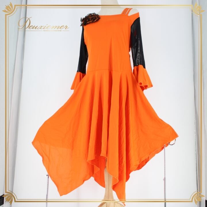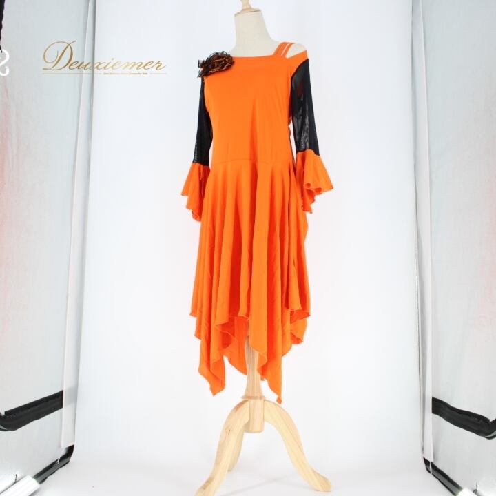 #社交ダンス #ダンス衣装 #ドレス #A_vivare #ブラックオレンジ #花飾り #ダンスファッション #ダンススタイル #パーティー衣装 #女性用ドレス #伸縮性 #トルソー #ダンスコスチューム #特別な日 #おしゃれ #ダンス用品 #フォーマル #衣装 #エレガント #ENUTSU