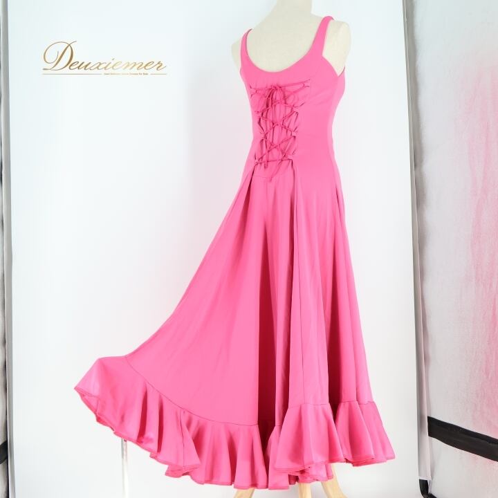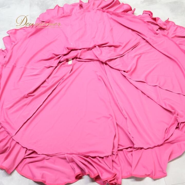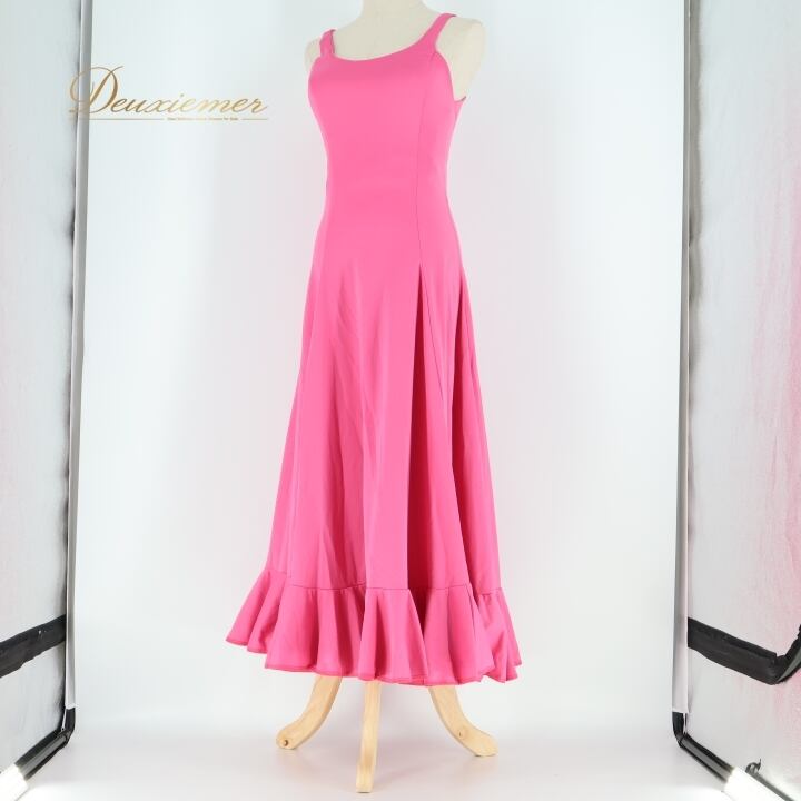 フラメンコ 衣装 ワンピース ドレス 無地 レッスン 練習着 ダンス パーティ 発表会 リボン ボランテ フリル ストレッチ 伸縮 ピンク系 カジュアル おしゃれ 女性用 かわいい ふんわり 上品