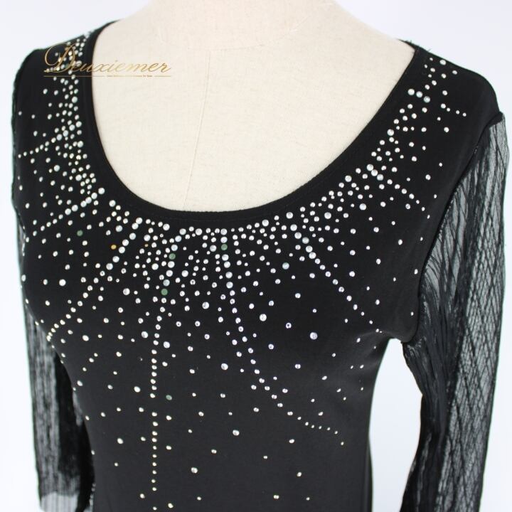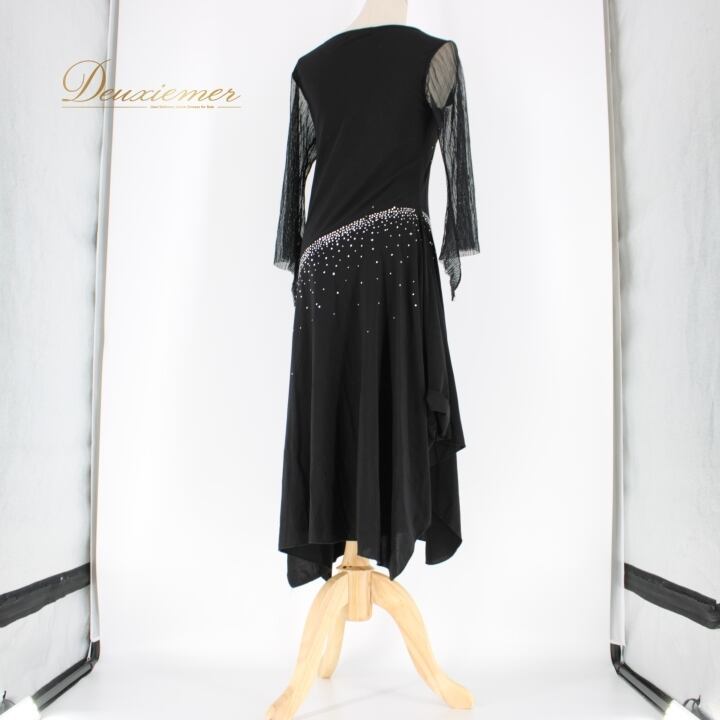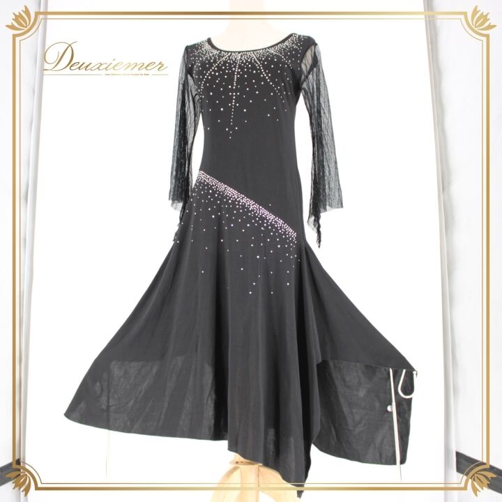 #社交ダンス衣装 #ダンスドレス #モノトーン #ラインストーン #ブラックドレス #ダンスファッション #ダンススタイル #パフォーマンス衣装 #プリマブティック #トルソー #女性用服 #伸縮性 #華やか #シンプルエレガンス #ダンスウェア #競技ダンス #エレガントスタイル #特別な日 #おしゃれ #ENUTSU