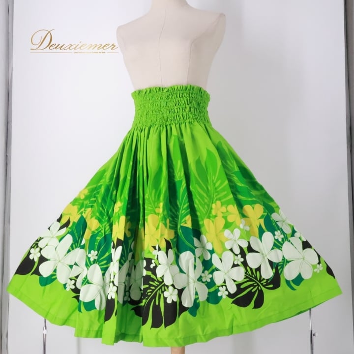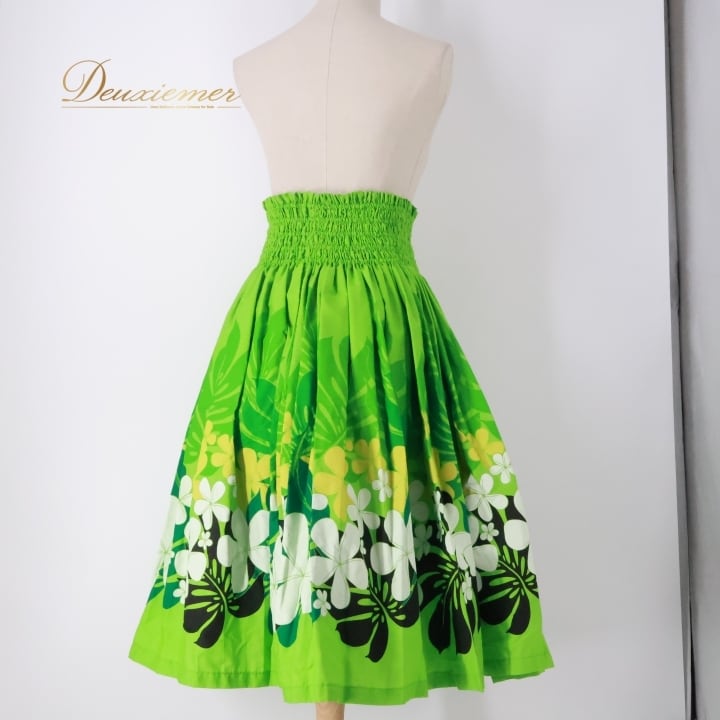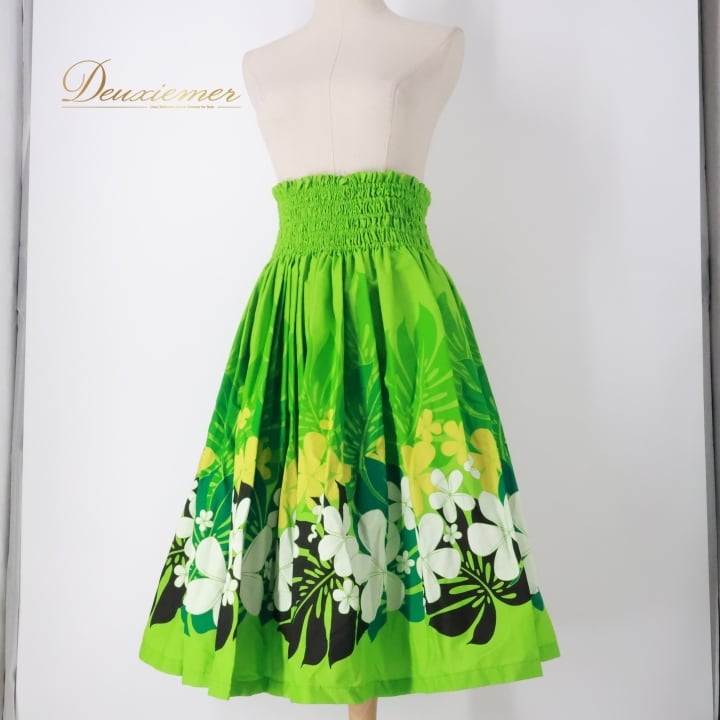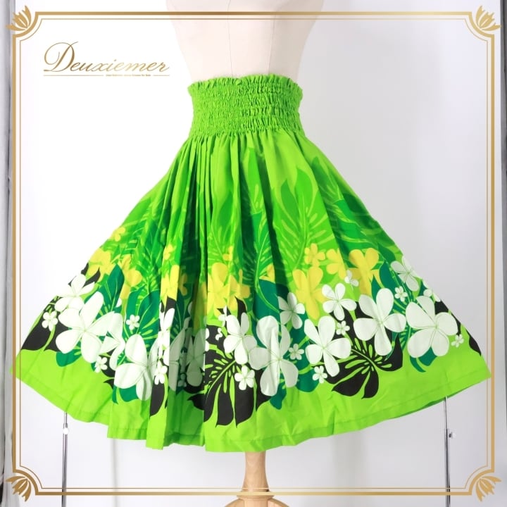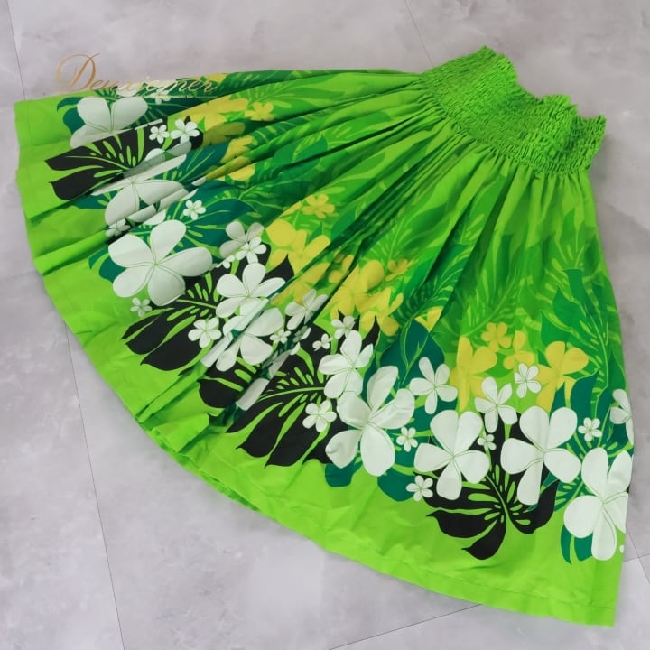 フラダンス 衣装 パウスカート グリーン系 ココエミリー 日本製 プルメリア柄 モンステラ柄 ハワイアンプリント CoCoEmily アロハ フラ ダンス レッスン 練習 ホワイト系 ブラック系 イエロー系 黄緑 緑 白 黒 黄 華やか 鮮やか かわいい おしゃれ シングル スカート フラダンス衣装 ハワイアンファッション カジュアル フラダンスレッスン 軽やか