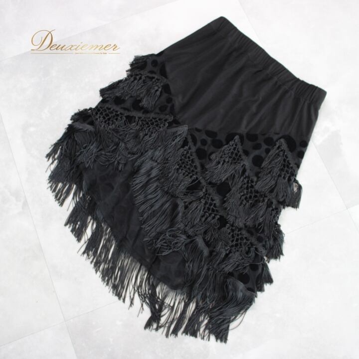 平置き実測:総丈約62cm※裾の長い所まで(フリンジ含む)、ウエスト約31.5cm~