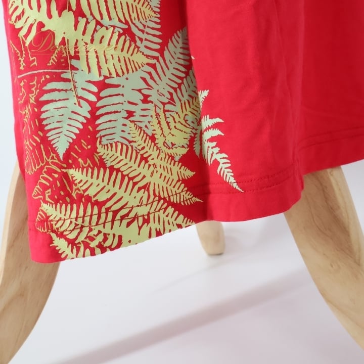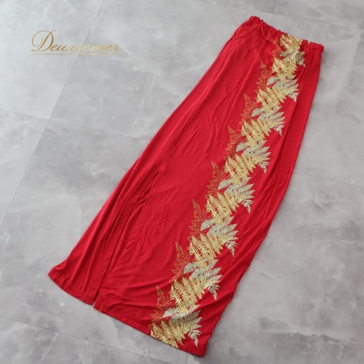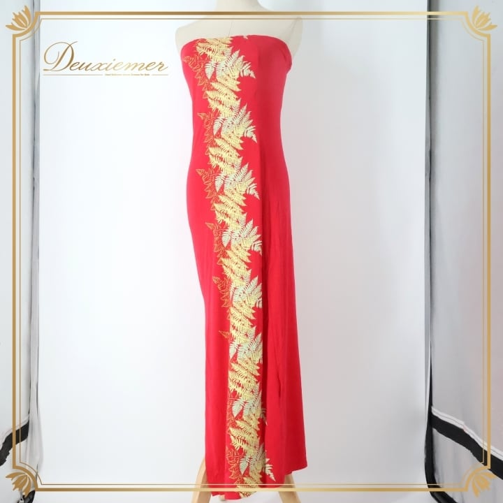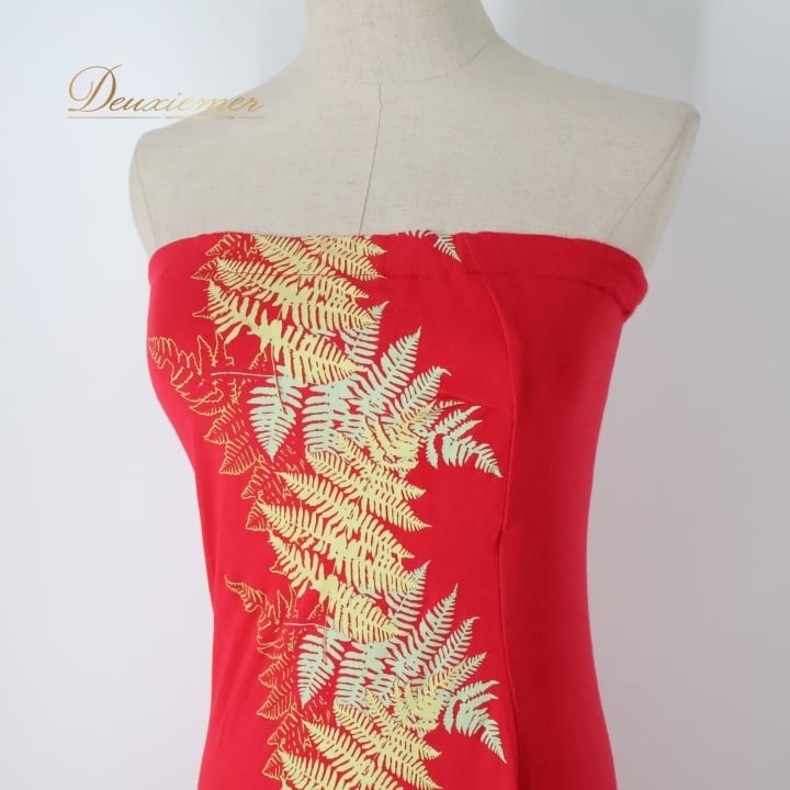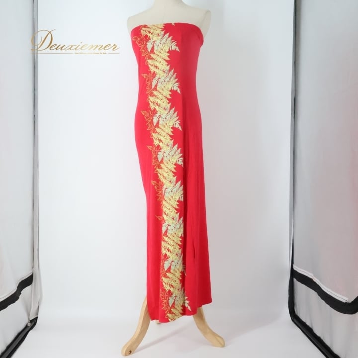 フラダンス 衣装 ワンピース ドレス レッド系 ハワイアンプリント 植物柄 フリル スリット 華やか 鮮やか おしゃれ 大人っぽい グリーン系 イエロー系 赤 黄 黄緑 フラ ダンス 練習 レッスン ハワイアン 着回し 大人 女性用 シンプル