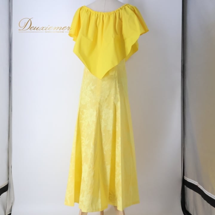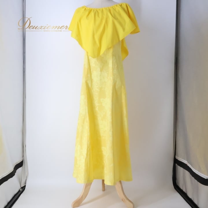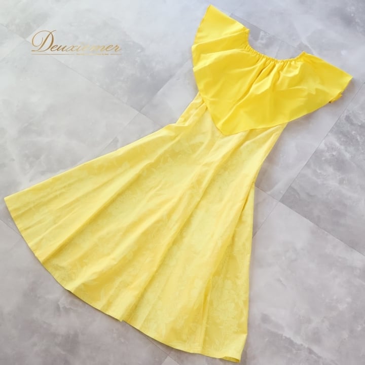 #フラダンス #フラ #衣装 #ワンピース #ドレス #ハワイアン #プリント #華やか #イエロー #マーメイドライン #女性用 #ファッション #パーティー #ダンス衣装 #おしゃれ #夏服 #シンプル #セレモニー #コスチューム #ENUTSU