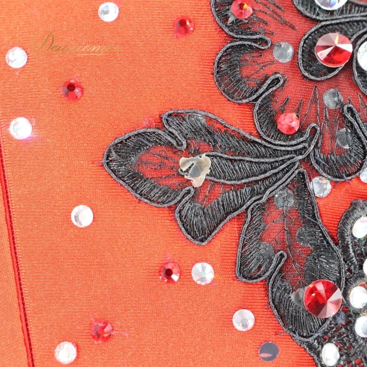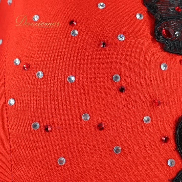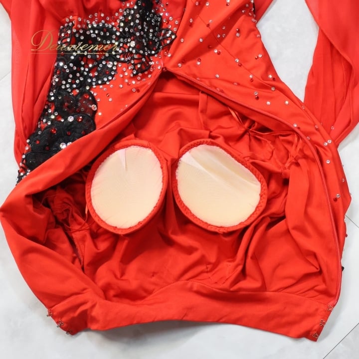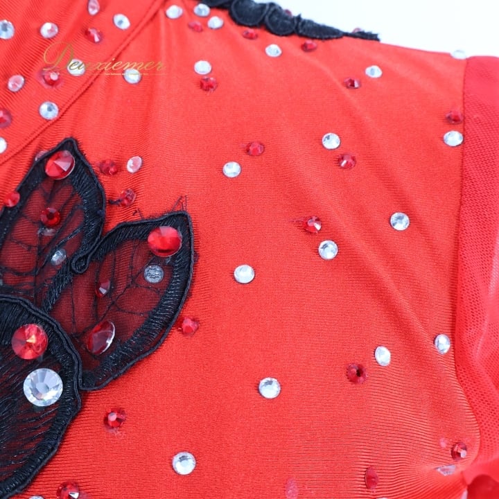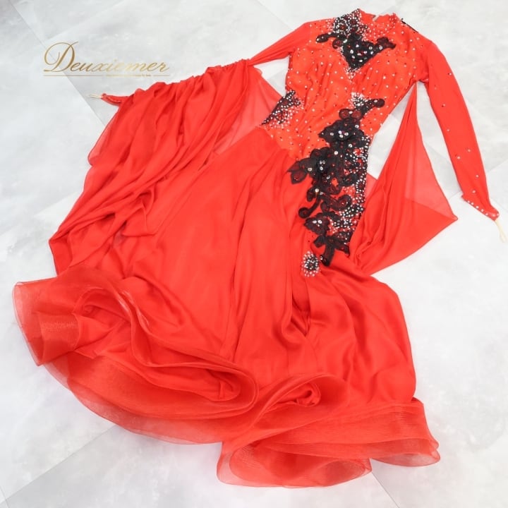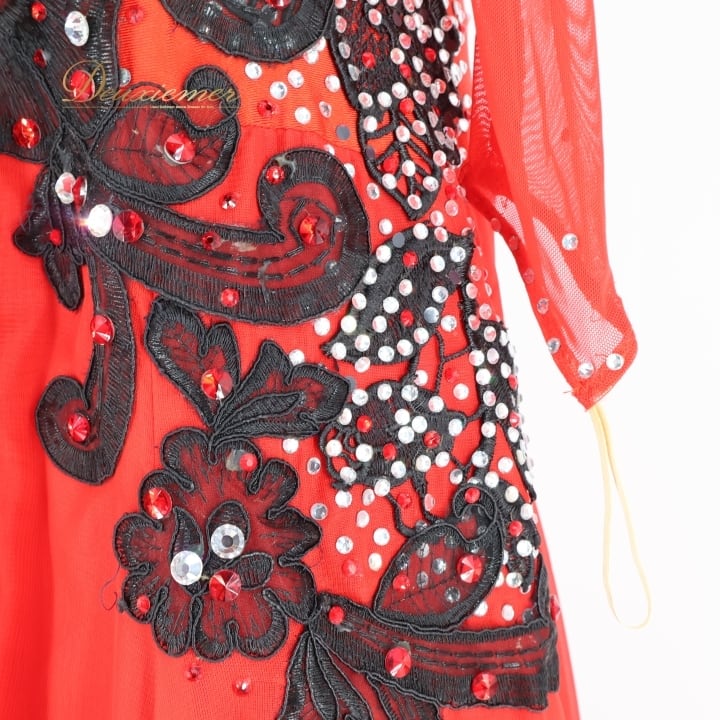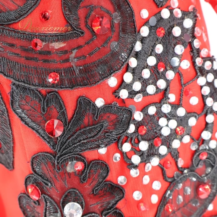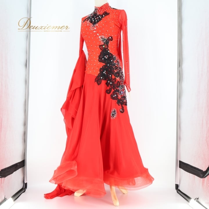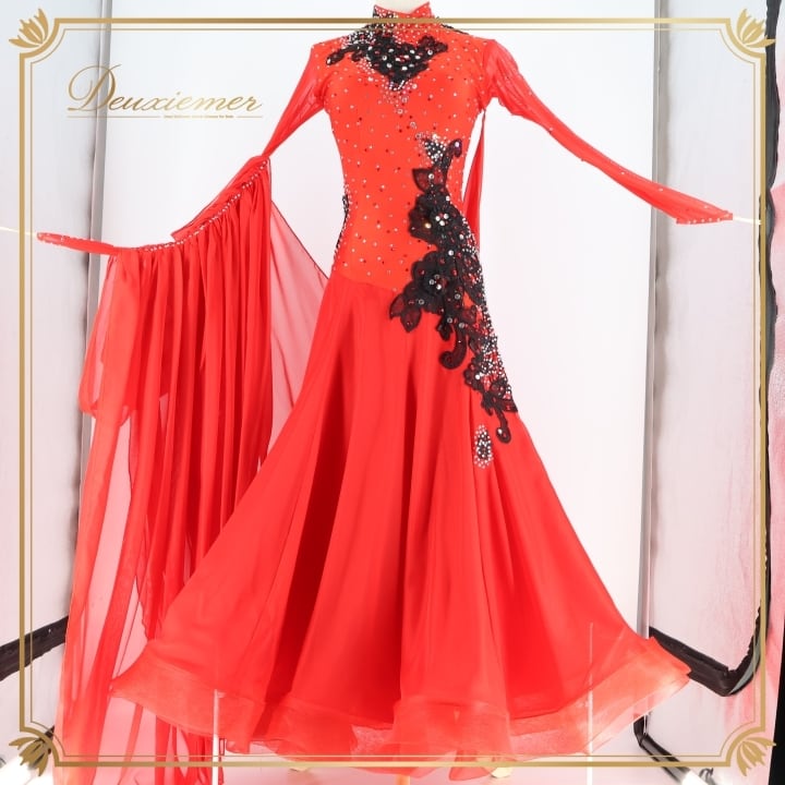 社交ダンス 衣装 スタンダードドレス ドレス ワンピース スタンダード フロート レース ダンス デモ パーティ 発表会 黒 上品 ブラック系 レッド系 豪華 ドレス スカート フロート 3枚重ね 露出少なめ 上品デザイン Mサイズ