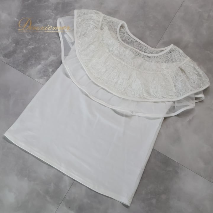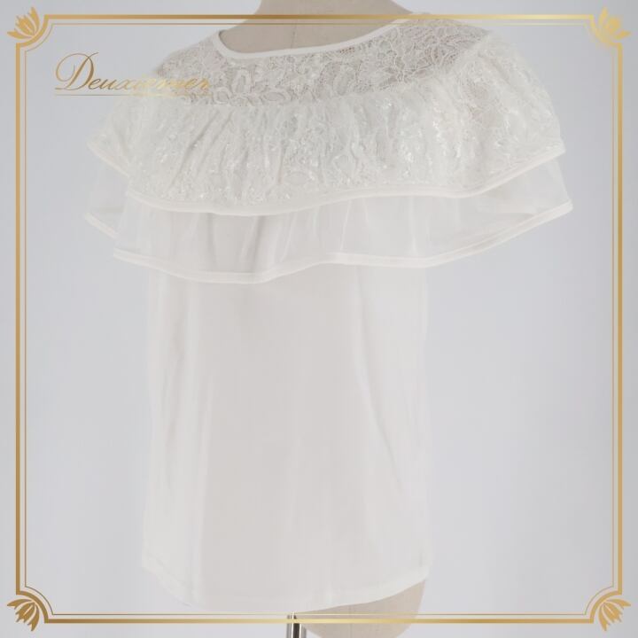 フラダンス 衣装 トップス マーメイドライン エムエムジェイ ホワイト系 MermaidLine MMJ ワンカラー 白 フリル レース チュール かわいい 華やか 明るい 上品 鮮やか 綺麗 ハワイアン アロハ フラ ダンス レッスン 練習