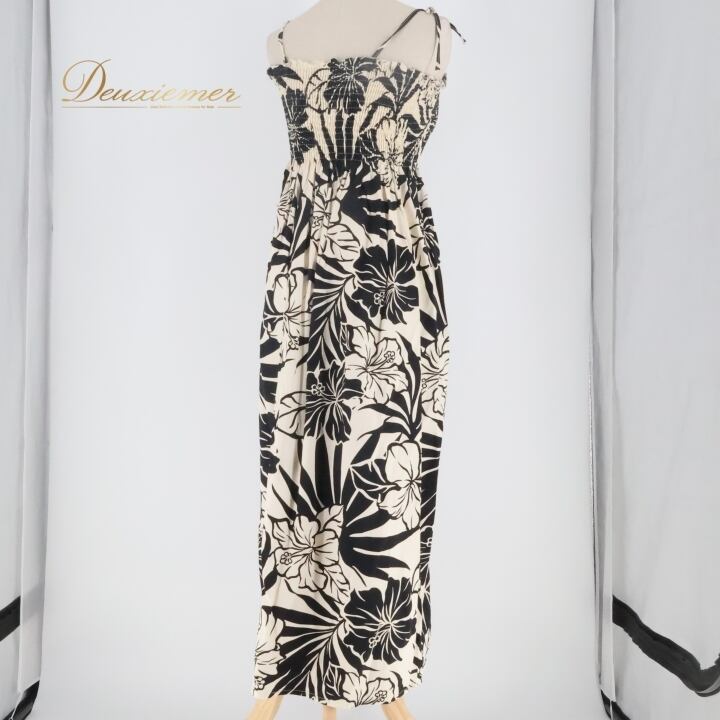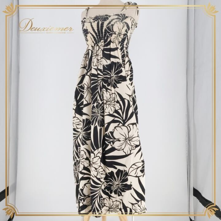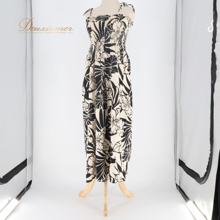 フラダンス 衣装 ワンピース ドレス smart design ホワイト系 ブラック系 ハワイ製 キャミソールワンピース モノトーン ハイビスカス柄 かわいい 華やか 上品 おしゃれ 白 黒 ハワイアン アロハ ハワイアンプリント フラ ダンス レッスン 練習