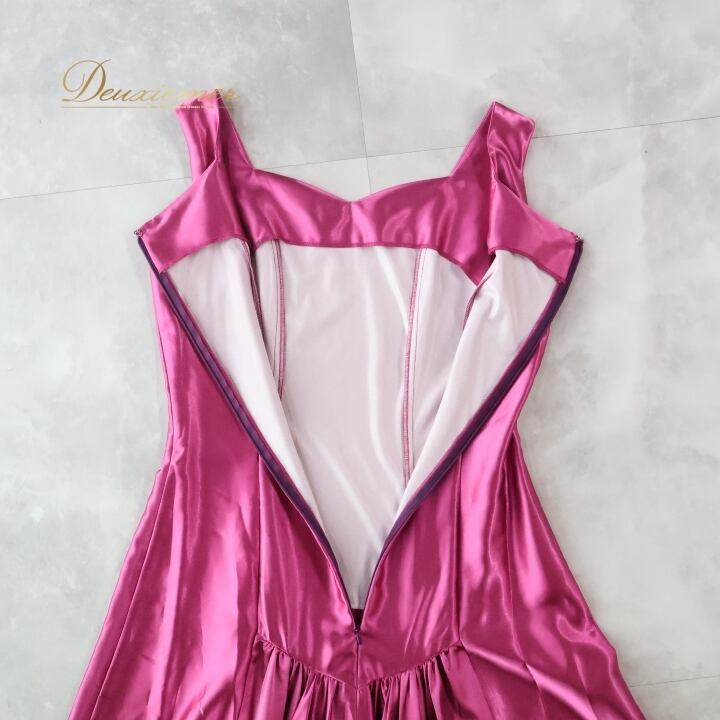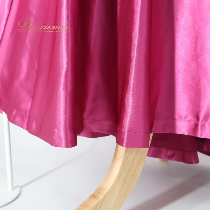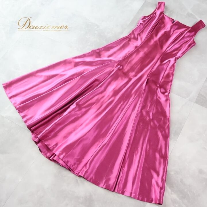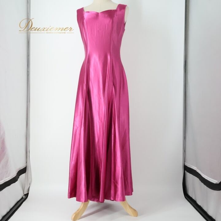 フラダンス 衣装 ワンピース ドレス ピンク系 サテン 華やか 鮮やか 光沢 高級感 かわいい おしゃれ 上品 大人っぽい ハワイアン アロハ フラ ダンス レッスン 練習 ノースリーブ フレアスカート さわやか パーティー かわいらしい きれい 大人用 ゴージャス