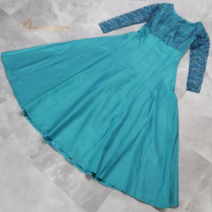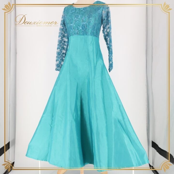 フラダンス 衣装 ワンピース ドレス エムエムジェイ モダニスティック ブルー系 mmj modernistic 日本製 レース 長袖 かわいい 上品 高級感 豪華 華やか 鮮やか 大人っぽい ハワイアン アロハ フラ ダンス レッスン 練習 おしゃれ