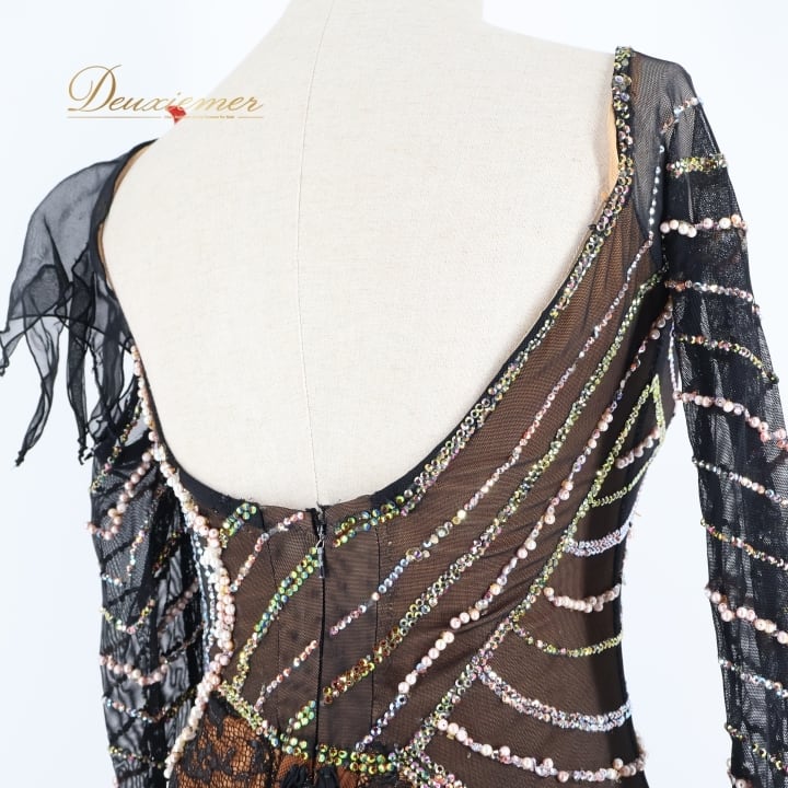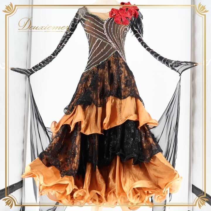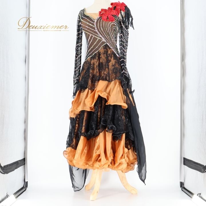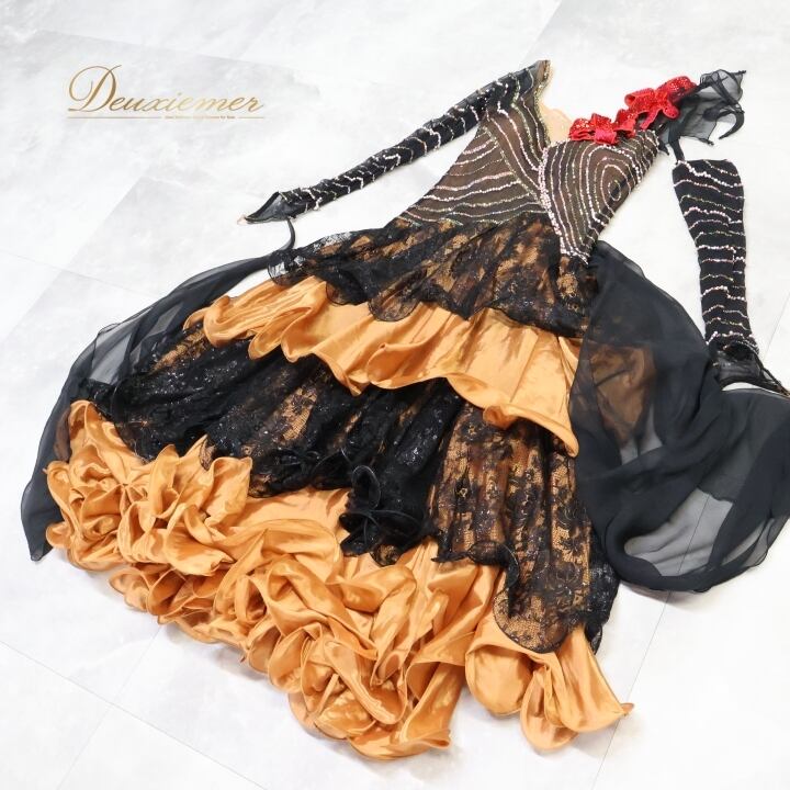 社交ダンス 衣装 クリスアン chrisanne スタンダードドレス ワンピース ドレス スタンダード フロート 茶色 赤 花 デモ 競技 ダンス パーティ 発表会 上品 レース 光沢 ブラック系 ブラウン系 高級感 おしゃれ競技用 発表用 レディース ダンス衣装