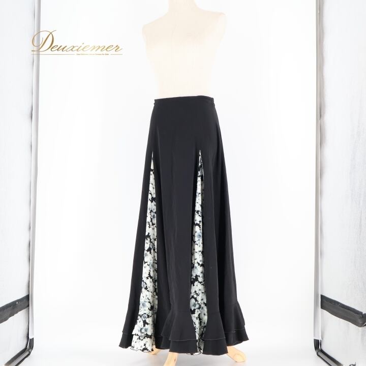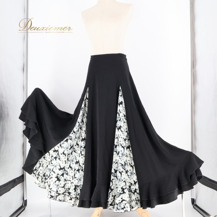 フラメンコ 衣装 ファルダ スカート 黒 グレー 花柄 かわいい 軽い 薄い ペチコート ダンス パーティ 発表会 レッスン ボランテ フリル ブラック系 グレイ系 フェスティバル おしゃれ 女性用