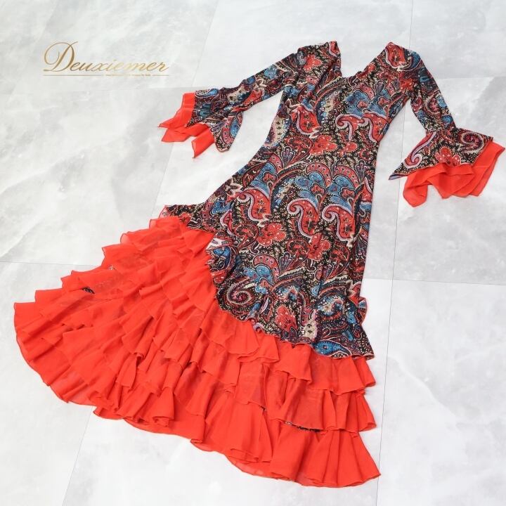 #フラメンコ #衣装 #ワンピース #ドレス #ファッション #パフォーマンス #総柄 #華やか #ダンス #トルソー #背面ファスナー #スリット #ボリュームアップ #スタイル #エンターテインメント #女性用 #伸縮性 #コーディネート #セクシー #ENUTSU