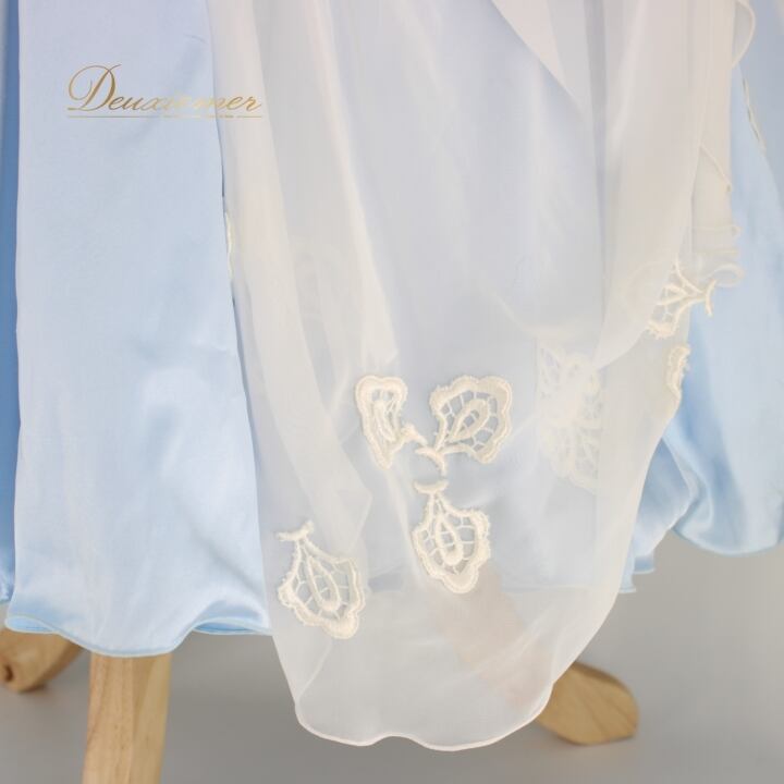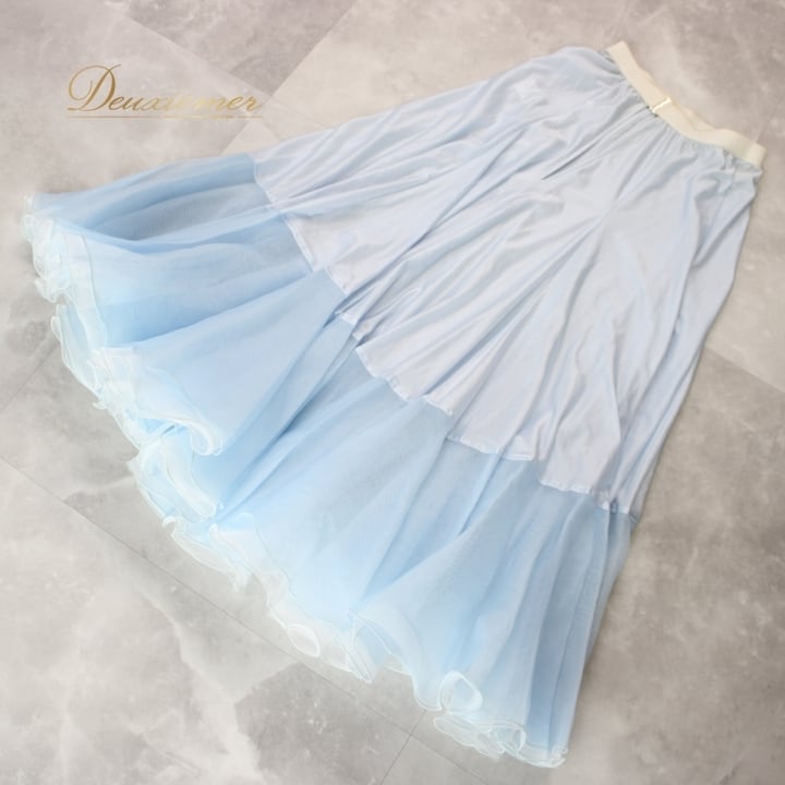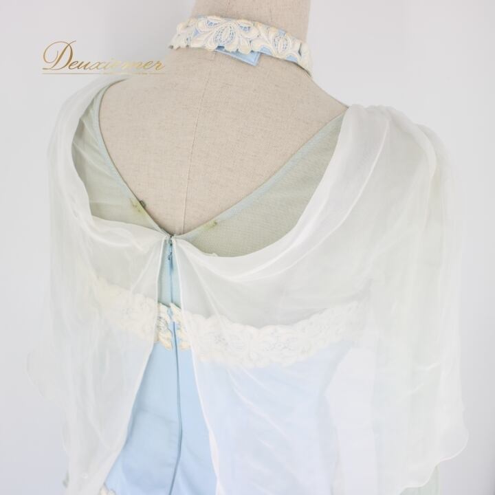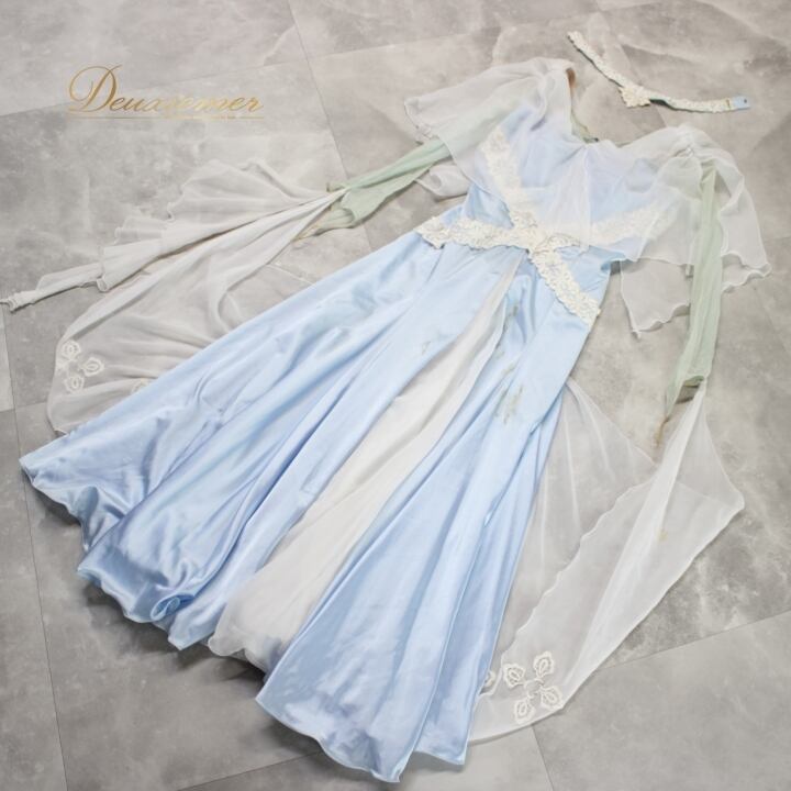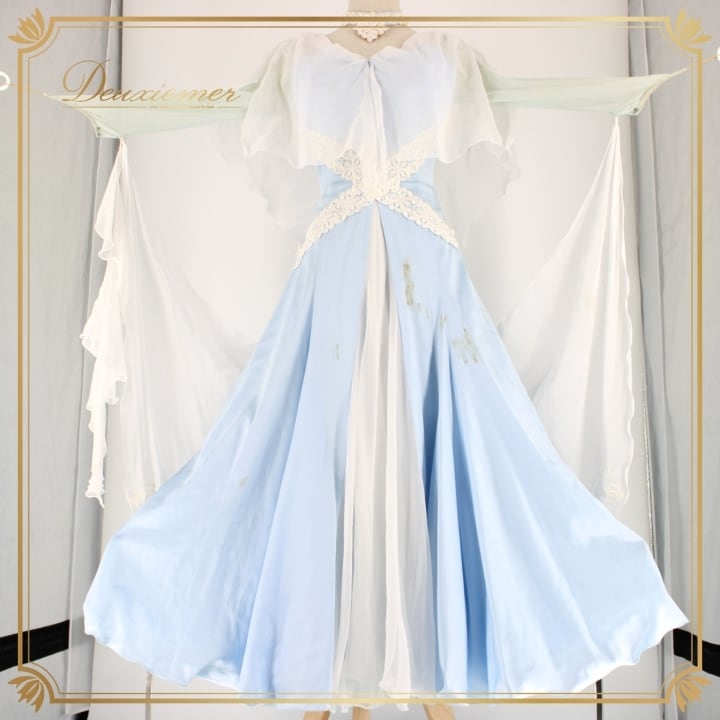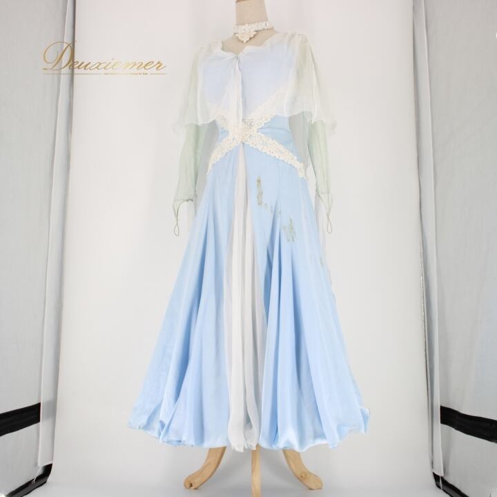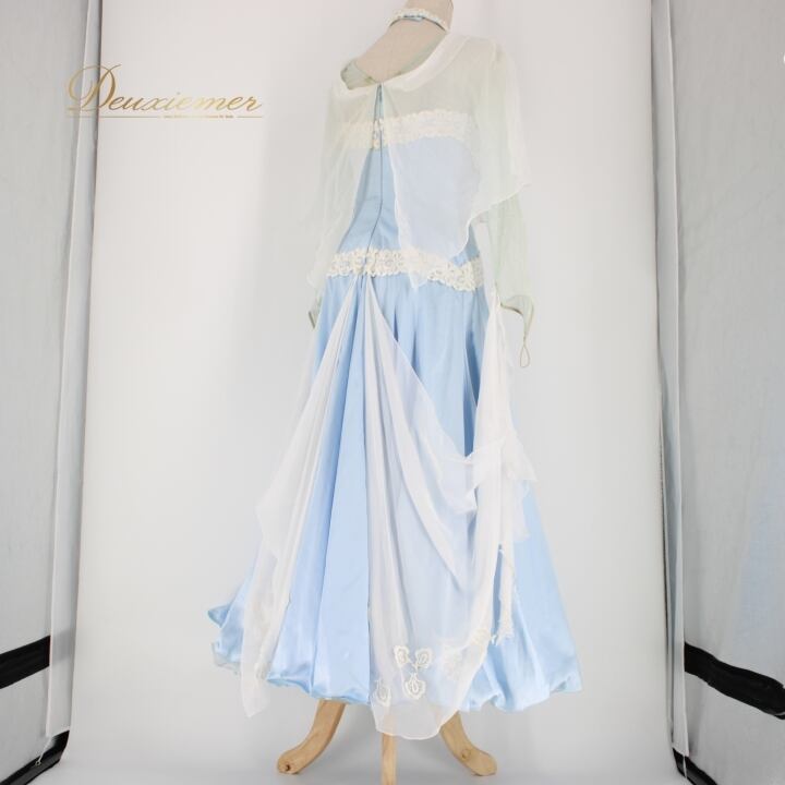 #社交ダンス #ダンス衣装 #ドレス #ライトブルー #ホワイト #日本製 #SORELI #二重スカート #優雅な動き #パニエ #ファスナー #伸縮性 #胸パッド #ダンスファッション #おしゃれ #女性用 #トルソー #舞踏 #ダンスパートナー #ENUTSU