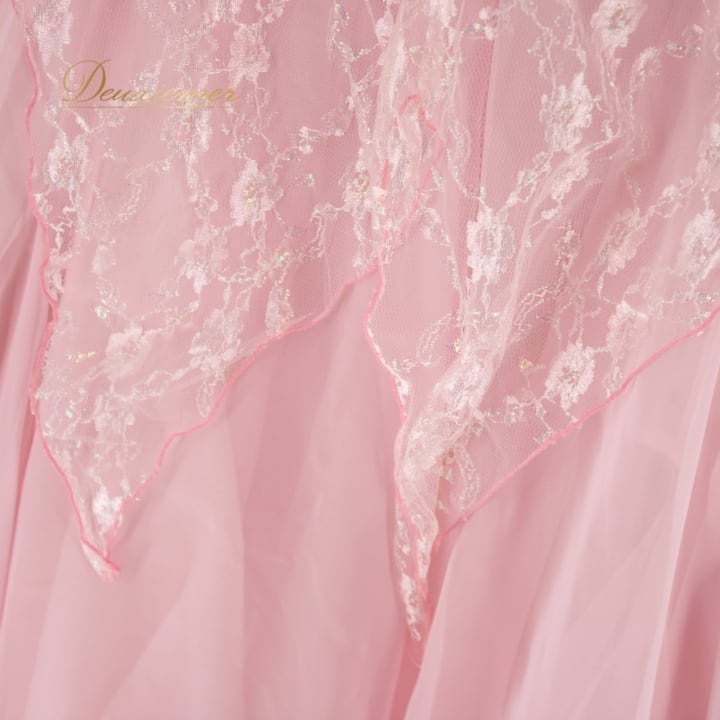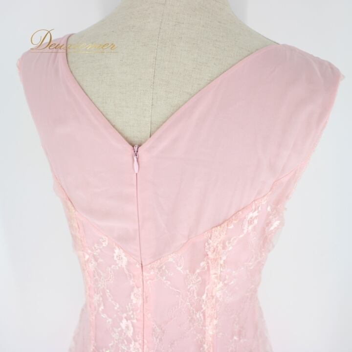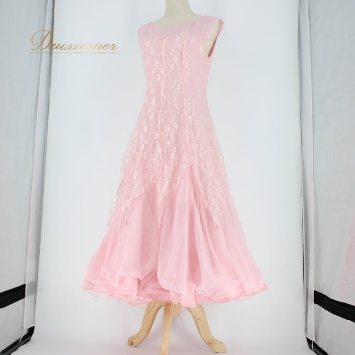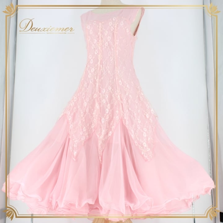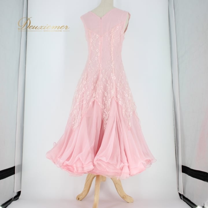 社交ダンス 衣装 スタンダード ドレス ワンピース パーティドレス オールシーズン ピンク系 レース 花柄 袖なし ノースリーブ 派手 フェミニン 華やか 上品 ふんわり広がる シルエット 二重スカート ポリエステル 109cm 42cm 35cm