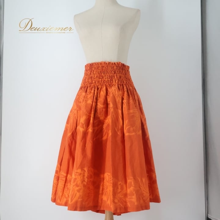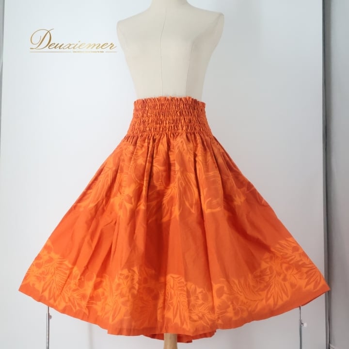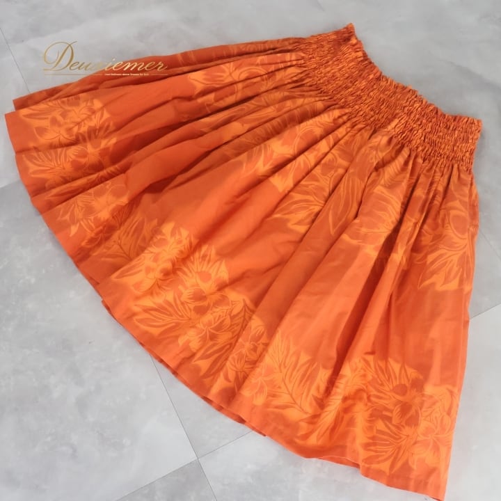 #フラダンス #パウスカート #ハワイアンファッション #日本製 #アロハスタンダード #フラダンサー #トロピカル #オレンジ #ウエストゴム #華やか #ハワイ #衣装 #ダンス衣装 #おしゃれ #フィット感 #リゾートファッション #カラフル #プリントスカート #夏服 #ENUTSU