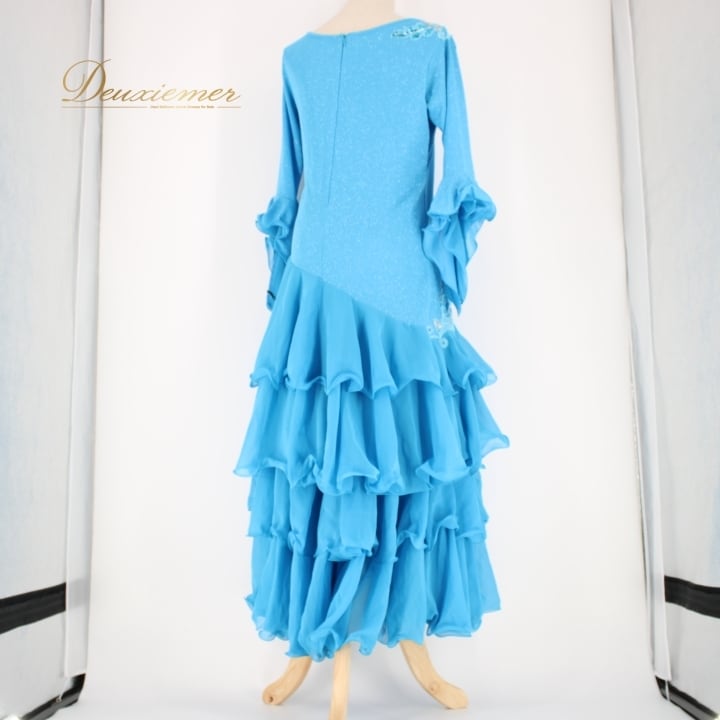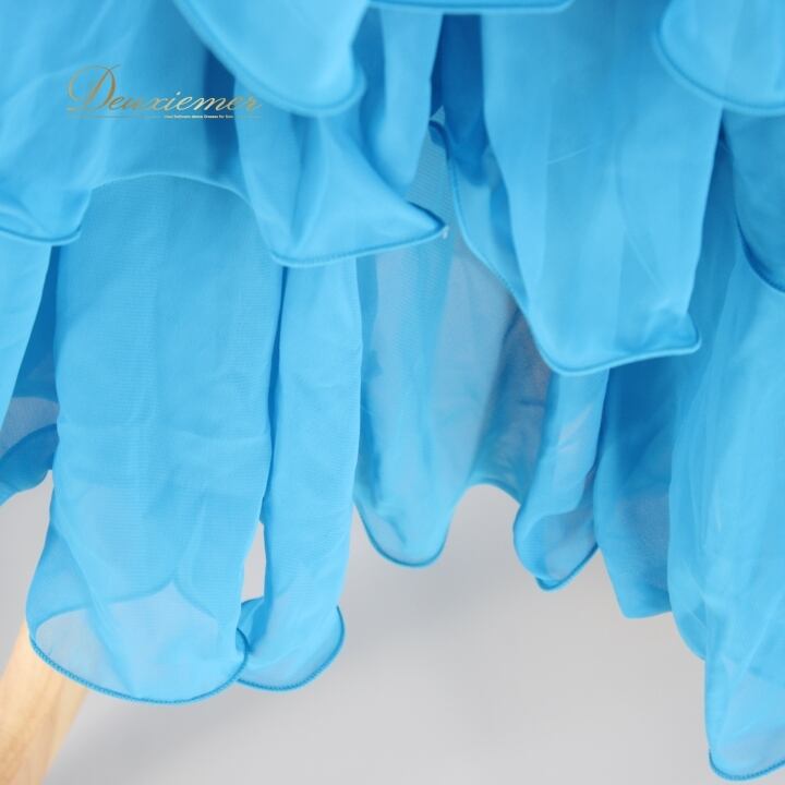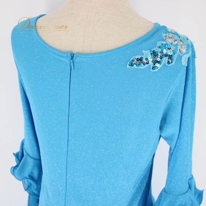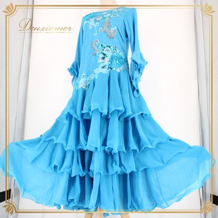 社交ダンス 衣装 スタンダード ドレス ワンピース パーティドレス レディース オールシーズン 水色 ライトブルー系 フリル スパンコール 派手 ライトブルー フォーマル フェスティバル フラワー モチーフ エレガント オシャレ ダンスウェア ステージ衣装 夜会 薔薇 デザイン パーティ 衣装 プロ仕様 伸縮性あり 高品質 ポリエステル素材 美しいライン 目立つ スキルアップ パフォーマンス