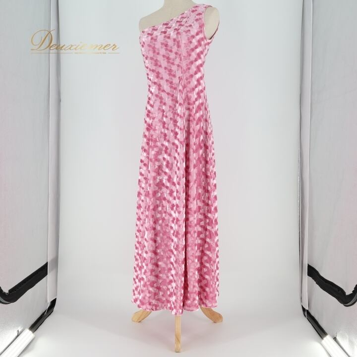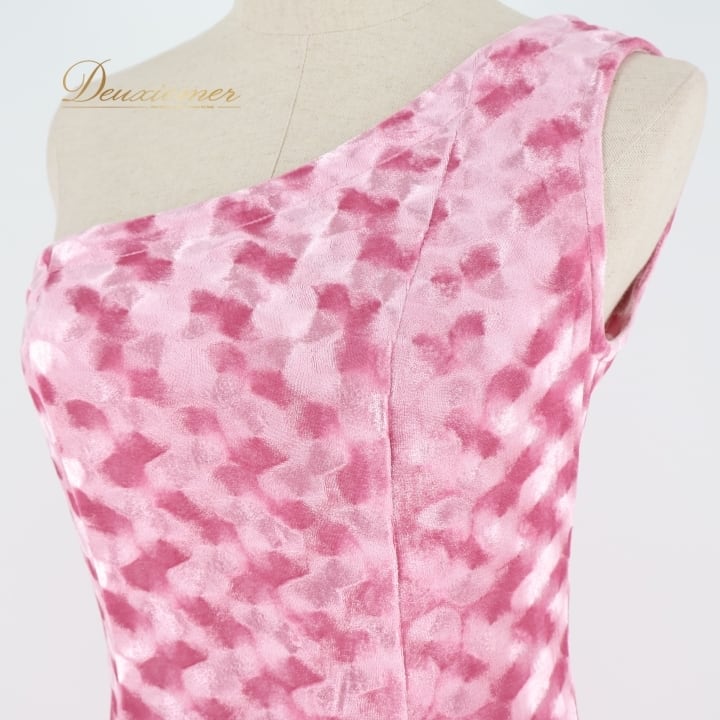 フラダンス 衣装 ワンピース ドレス マーメイドライン エムエムジェイ ピンク系 MermaidLine MMJ ワンショルダー ベロア ワンカラー かわいい 華やか 鮮やか 明るい 上品 高級感 おしゃれ ハワイアン アロハ フラ ダンス レッスン 練習