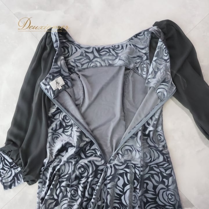 フラダンス 衣装 ワンピース ドレス ブラック系 アロハスタンダード 日本製 ALOHA STANDARDS ベロア チュール バラ フラワープリント グレイ系 黒 灰色 ハワイアン アロハ フラ ダンス レッスン 練習 華やか 大人っぽい モノトーン シフォン おしゃれ フェミニン かわいい レディース