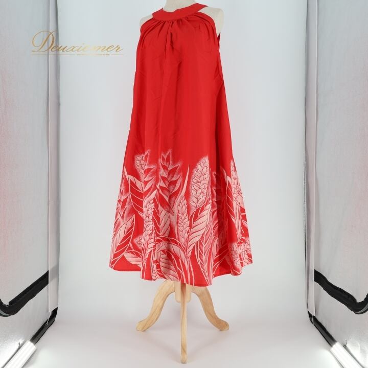 フラダンス 衣装 ワンピース ドレス ムームーファクトリー レッド系 T&L MUUMUU FACTORY ノースリーブ ハワイ製 ポケット付き かわいい 華やか 鮮やか 明るい 赤 白 ハワイアン アロハ ハワイアンプリント フラ ダンス レッスン 練習