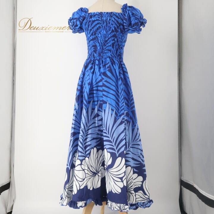 #フラダンス #フラダンス衣装 #ワンピース #ドレス #ハワイアンプリント #ブルー #かわいい #フリル付き #ダンス衣装 #ハワイ #ビーチスタイル #夏服 #女性用 #ファッション #カジュアル #トロピカル #アウトドアイベント #フラ #エスニック #ENUTSU