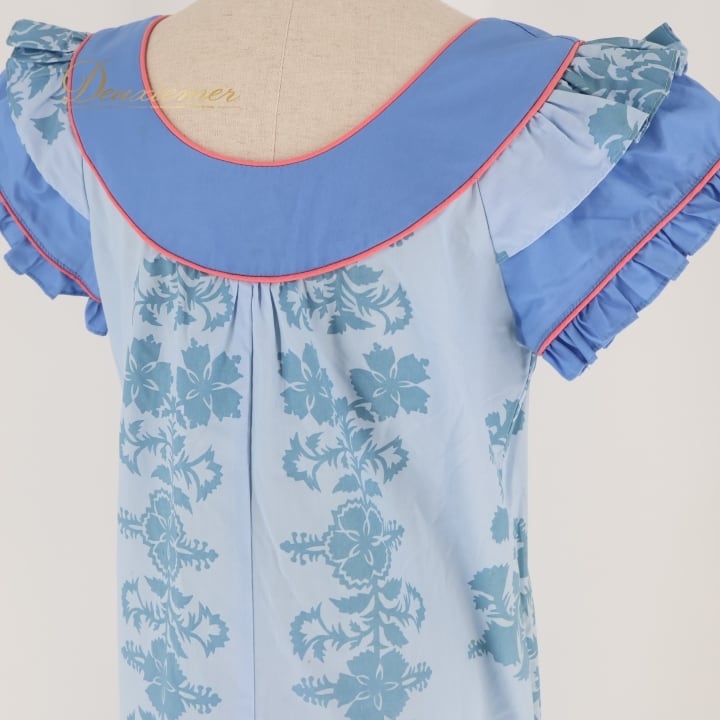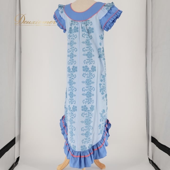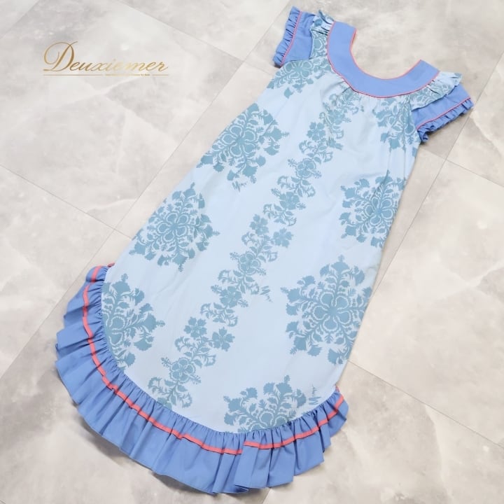 フラダンス 衣装 ワンピース ドレス MAMO HOWELL ブルー系 ハワイ製 ポケット付き フリル かわいい 華やか 鮮やか 明るい 青 水色 橙 ハワイアン アロハ ハワイアンプリント フラ ダンス レッスン 練習 オレンジ系 リゾート