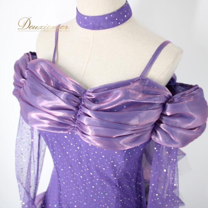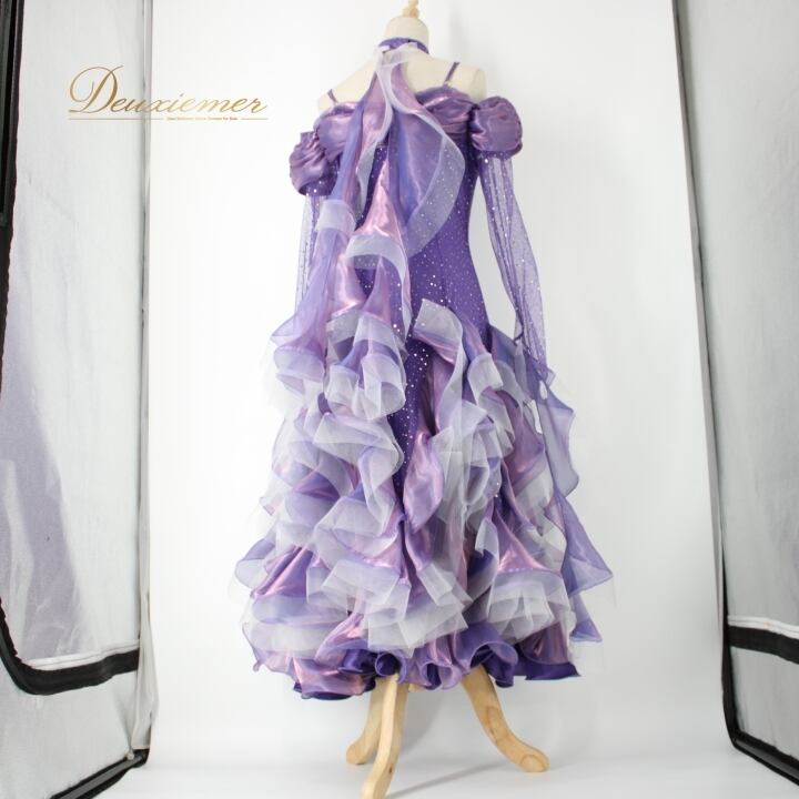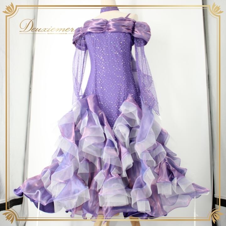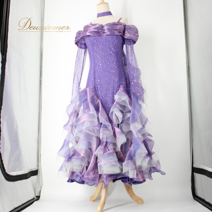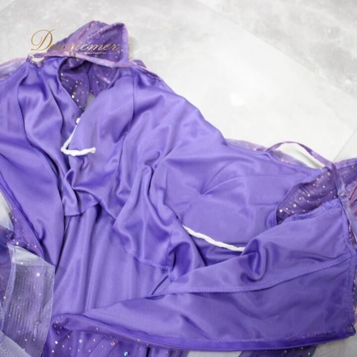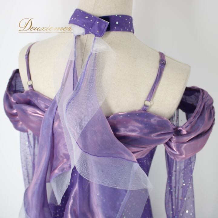 #社交ダンス #ダンスドレス #舞台衣装 #ダンスファッション #パープルドレス #ホースヘア #フロート付き #コスチューム #女性用ドレス #スタイリッシュ #ダンススタイル #ダンス用品 #セクシーコスチューム #チョーカー付き #オシャレ #パフォーマンス #衣装デザイン #ダンスイベント #社交ダンス衣装 #ENUTSU