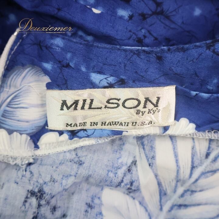 フラダンス 衣装 ワンピース ドレス ブルー系 MILSON ハワイ製 ハイビスカス柄 ハワイアンプリント 花柄 アロハ フラ ダンス レッスン 練習 フリル ノースリーブ 華やか 鮮やか 上品 かわいい おしゃれ ホワイト系 青 白 水色 ハワイ 海リゾート エレガント 女性用