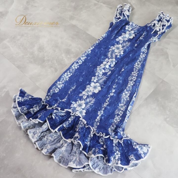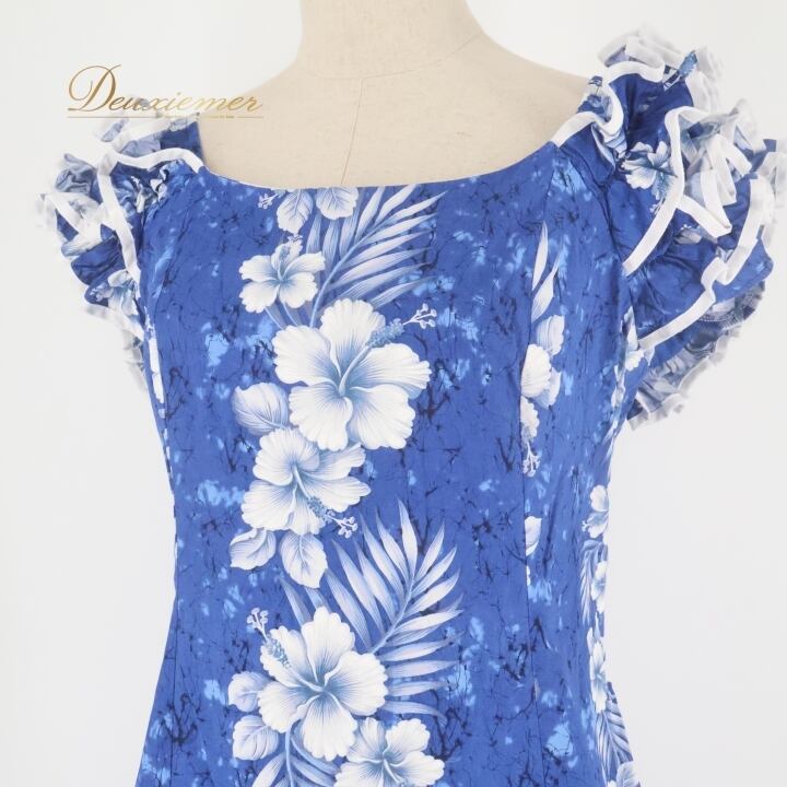 #フラダンス #ハワイアン #衣装 #ドレス #ワンピース #ハイビスカス #青色 #鮮やか #サイズフリー #女性用トルソー #フラ #エスニック #ビーチウェア #リゾートファッション #パーティードレス #カジュアル #ダンス #フラスタイル #アロハ #ENUTSU