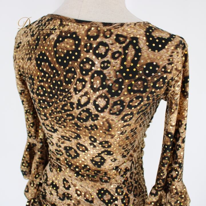 社交ダンス 衣装 スタンダード ドレス ワンピース レッスンウェア パーティドレス 黒 茶 ヒョウ柄 ベージュ系 ブラウン系 ブラック系 上品 ダンス用 大人 女性 おしゃれ 伸縮性あり フレア スカート 舞台衣装 セクシー パーティー コンサート カジュアル エレガント シンプル 洗練された ヒョウ柄ドレス ビジュアル インパクト