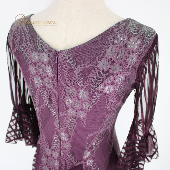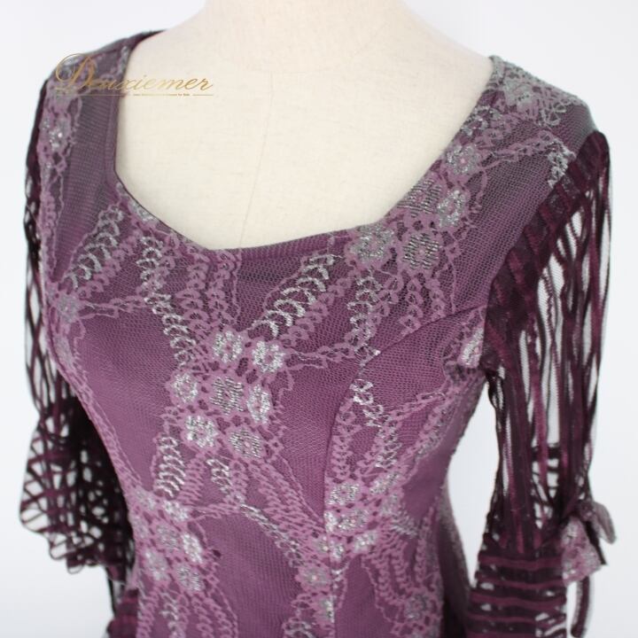 社交ダンス 衣装 スタンダード ドレス ワンピース パーティドレス オールシーズン solo 紫 パープル系 発表会 レース リボン シルバー系 ボリューム スカート 優雅 ミステリアス 深い色合い 上品 伸縮性 シンプル エレガント カジュアル フォーマル ダンス用品 発表会衣装 パーティー パフォーマンス 配色 配達 セット 着心地