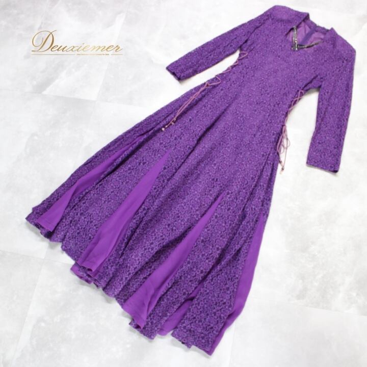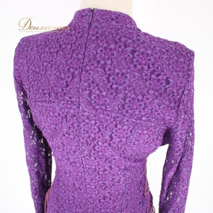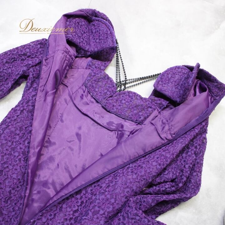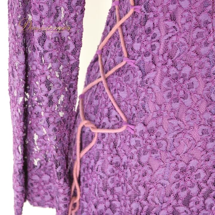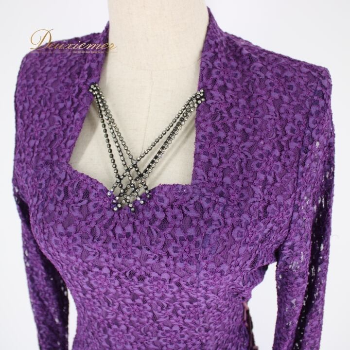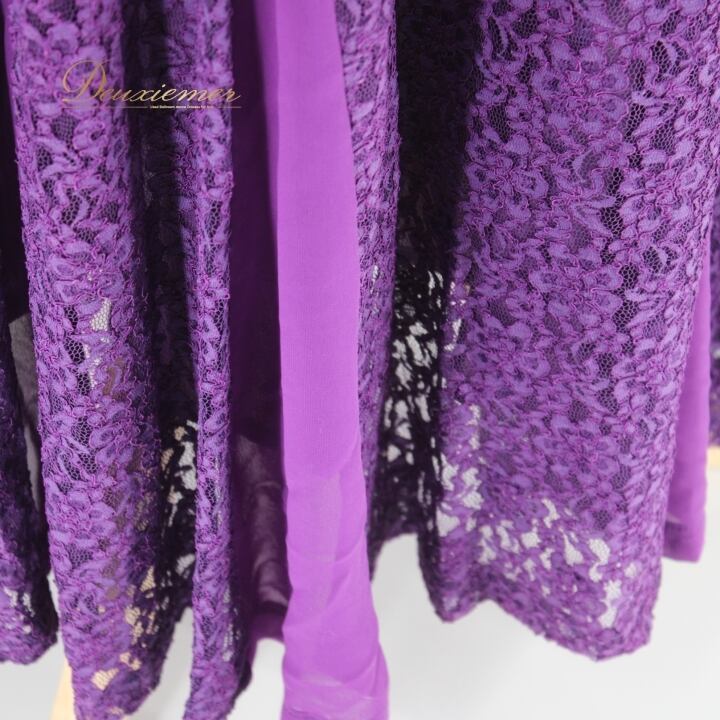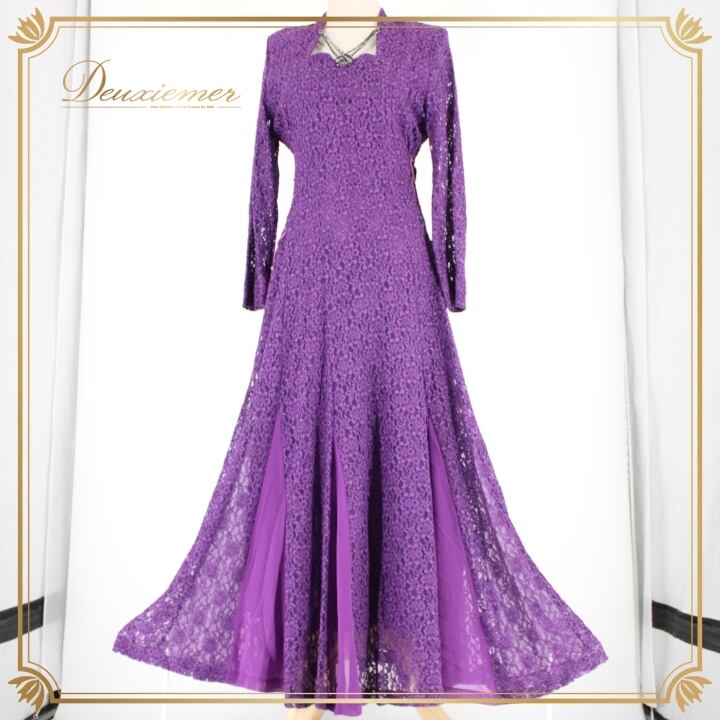 #社交ダンス #ダンスドレス #バイオレット #花柄 #レース #ダンスファッション #ウエストマーク #肩パッド #おしゃれ #大人の魅力 #舞台衣装 #ステージファッション #特別な日 #女性用トルソー #ダンス愛好家 #ポリエステル製 #伸縮性無し #ファスナー仕様 #ダンススタイル #ENUTSU