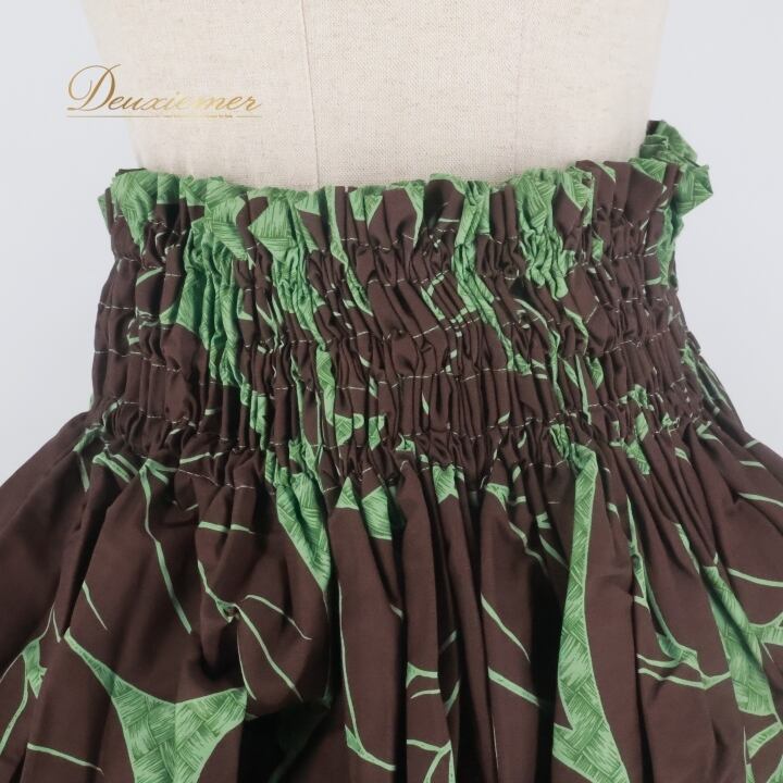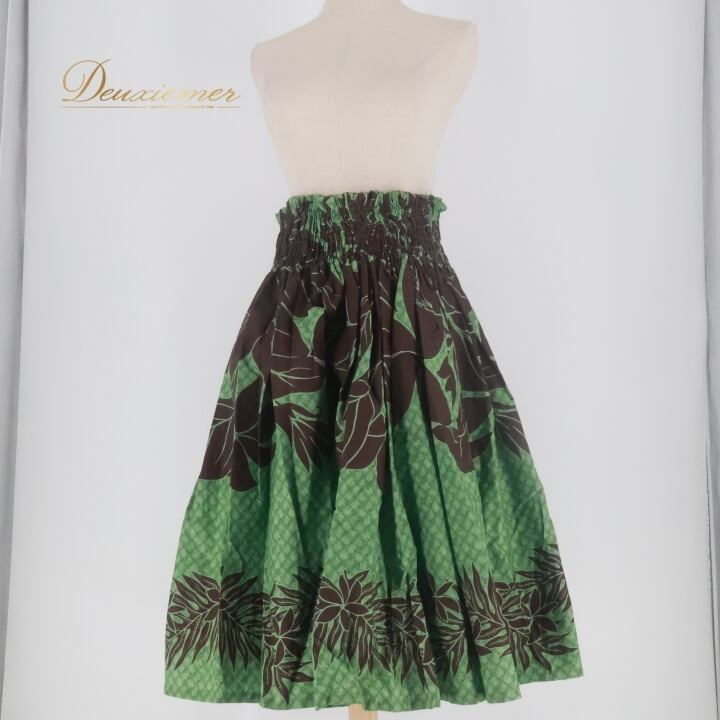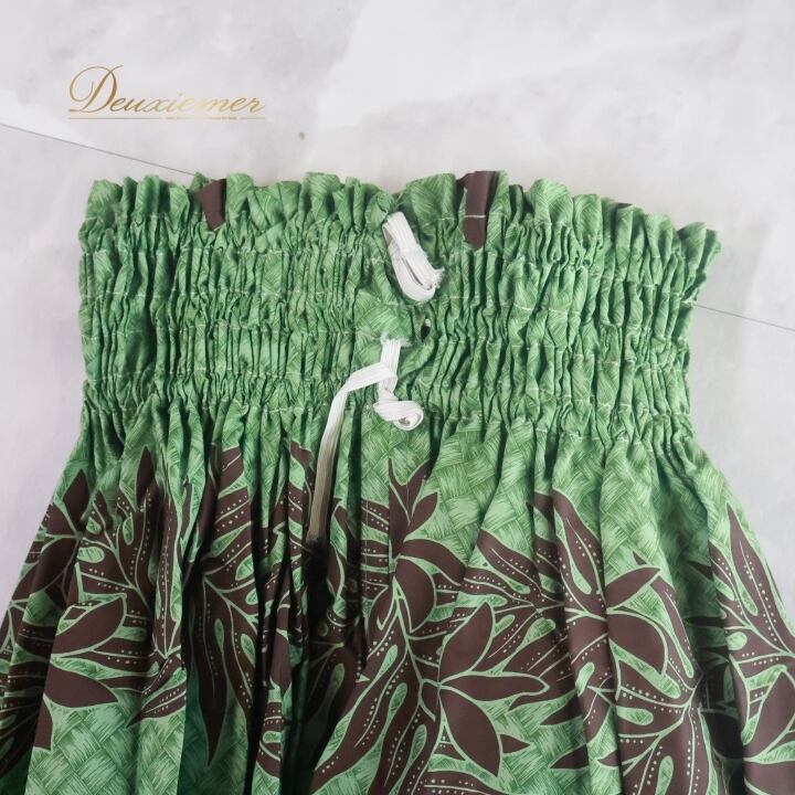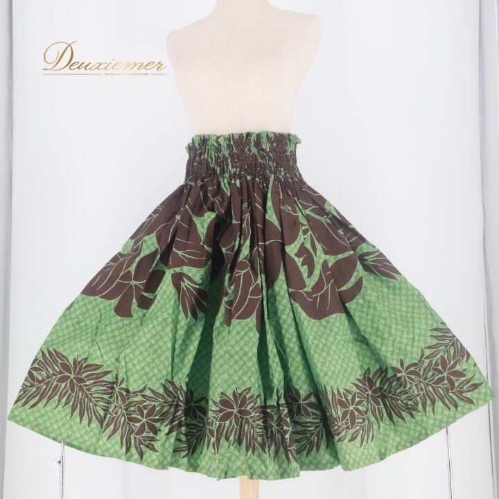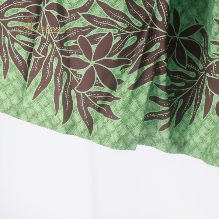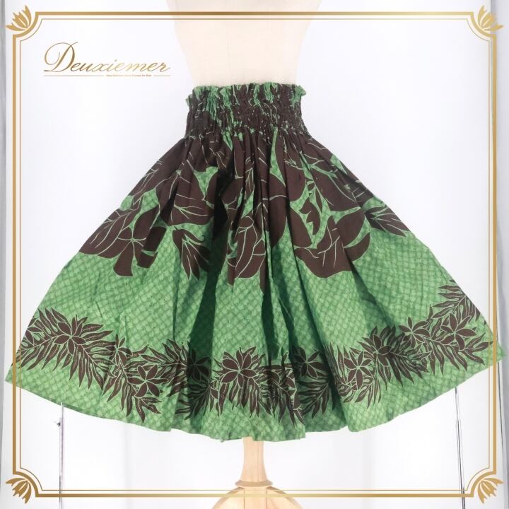 フラダンス 衣装 パウスカート グリーン系 ティアレ柄 ハワイアンプリント アロハ フラ ダンス レッスン 練習 シングル スカート 華やか かわいい おしゃれ 大人っぽい 花柄 植物柄 大人っぽい ふんわり 軽やか ブラウン系 黄緑 茶 ハワイ 大人 可愛い フレアスカート ホリデーリゾート おしゃれなデザイン 軽量