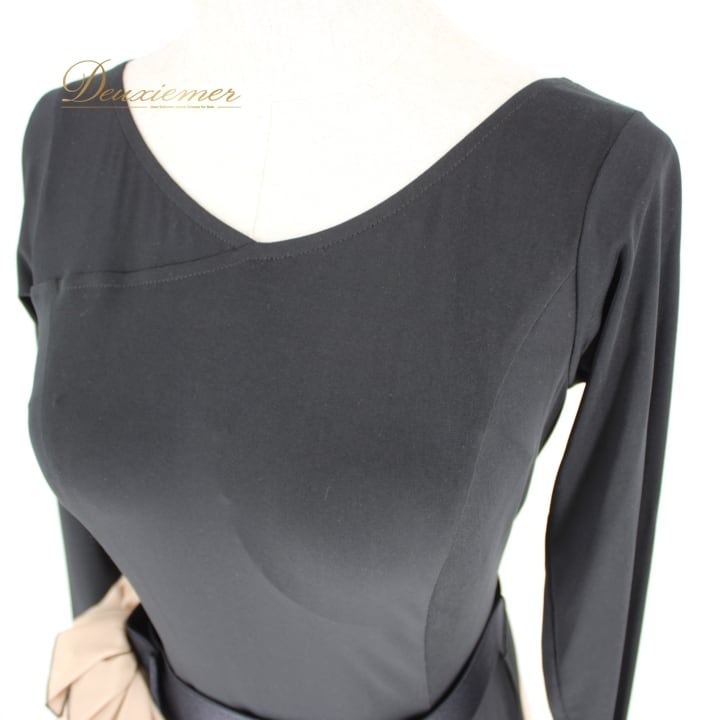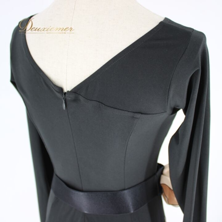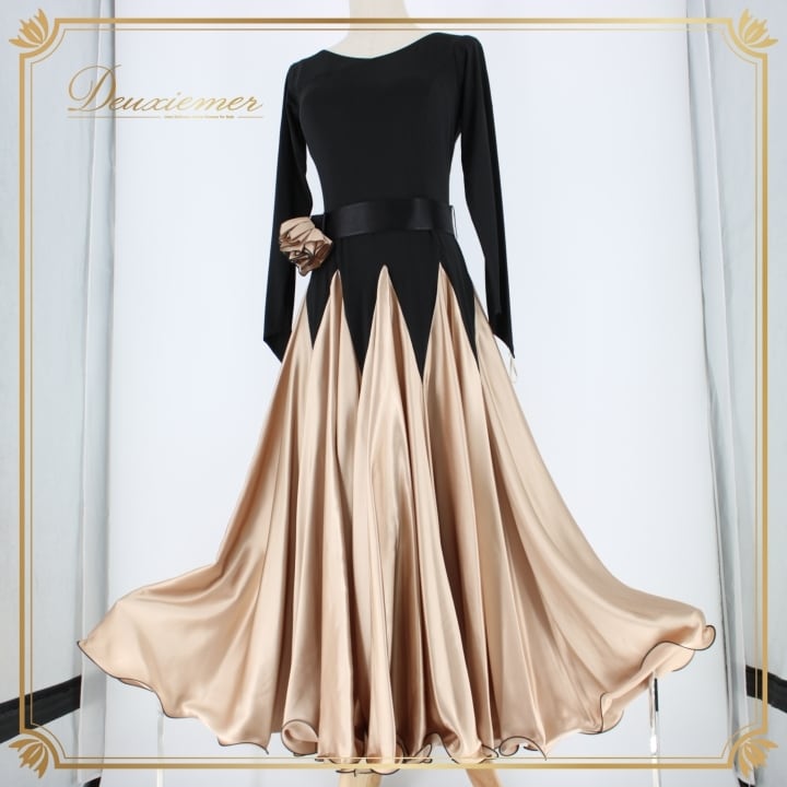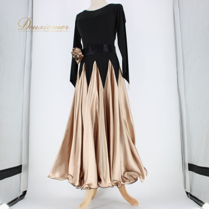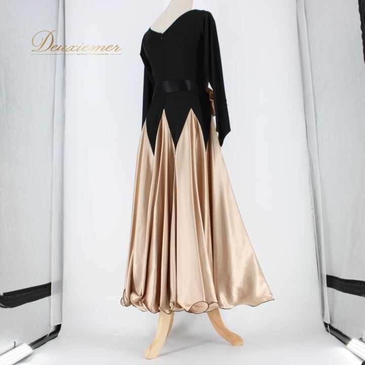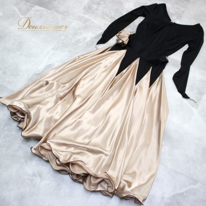 社交ダンス 衣装 スタンダード ドレス ワンピース パーティドレス レディース ブラック系 黒 ベージュ系 Sanline サンリーヌ 光沢感 長袖 無地 光沢 滑らか 伸縮性 ファスナー 日本製 116cm ドレスアップ フォーマル おしゃれ パーティー 大人仕様 レディースファッション 衣装用 ドレススタイル 高級感 豪華