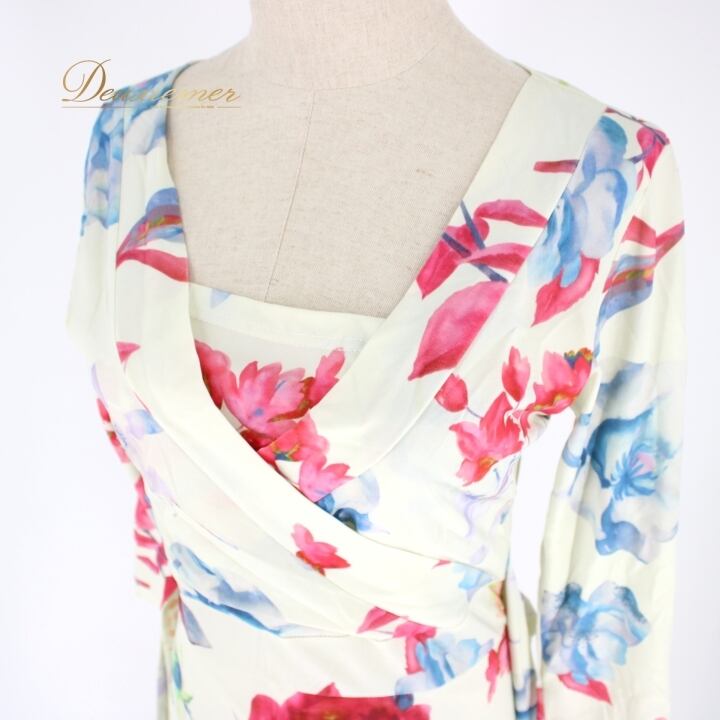 社交ダンス 衣装 スタンダード ドレス ワンピース パーティドレス Leirena レイリーナ ホワイト系 花柄 白 パープル系 ブルー系 ピンク系 オレンジ系 青 紫 花柄ドレス おしゃれ 結婚式 体型カバー 女性用ダンス コスチューム フォーマル イベント 着痩せ フェミニン かわいい 軽やか 柔らかい 美しいドレープ ルームウェア シンプル 清楚 旬なデザイン