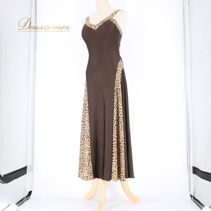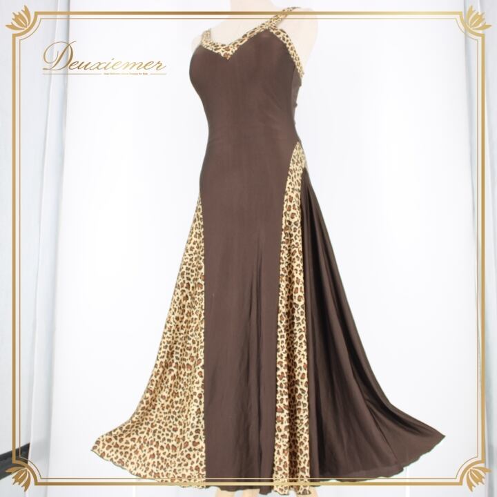#社交ダンス #ダンス衣装 #ドレス #ヒョウ柄 #ファッション #Mサイズ #ポリエステル #ブラウン #ベージュ #シックスタイル #夜のお出かけ #衣装レンタル #ダンスパフォーマンス #フェミニン #おしゃれ #ダンスウェア #セクシー #大人の女性 #WISH #ENUTSU