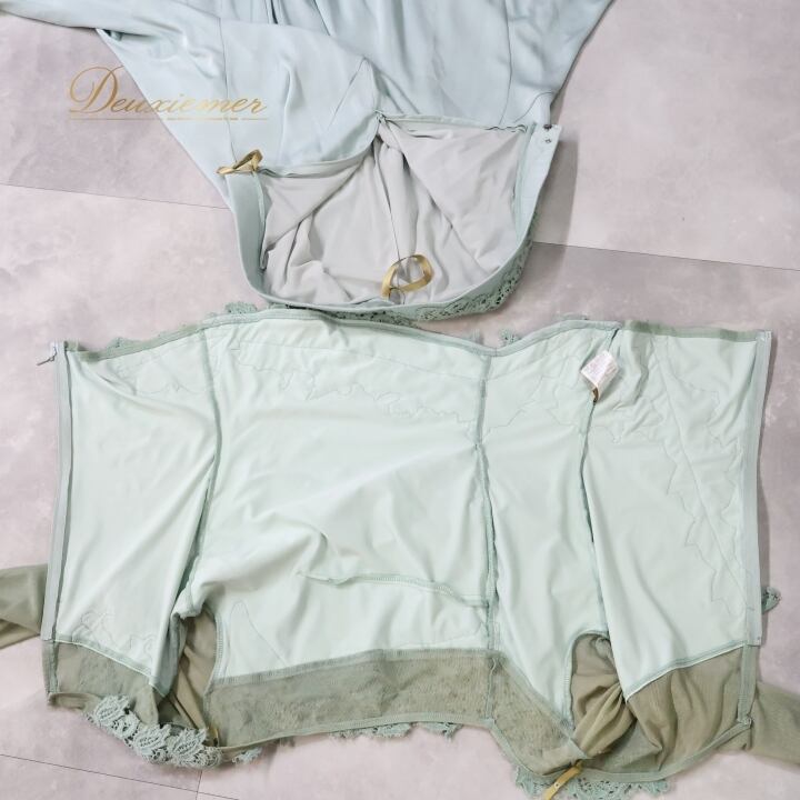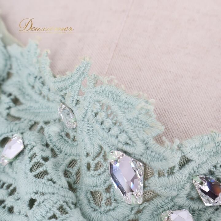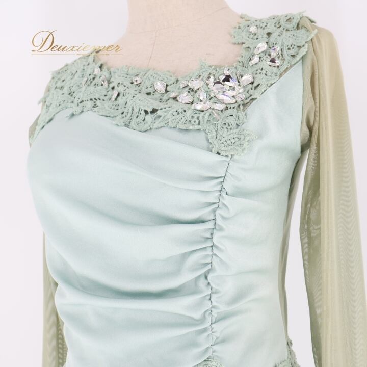 社交ダンス 衣装 チャコット Chacott トップス スカート ツーピース セットアップ レース 上品 綺麗 パーティ 発表会 緑 水色 ブルー系 グリーン系 Mサイズ 伸縮性 衣装セット おしゃれ